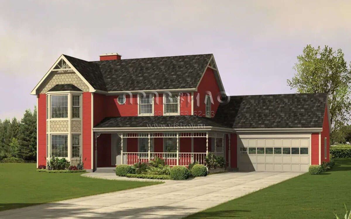 Проект двухэтажного дома с гаражом на две машины в стиле Ранчо S5-237 (5633-00436)