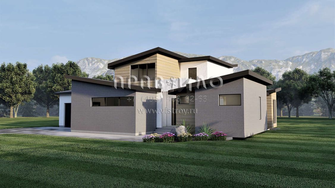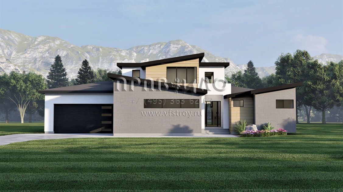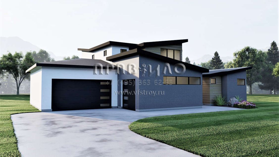 Проект двухэтажного дома с гаражом на три и более машин в современном стиле S5-237 (6422-00039)