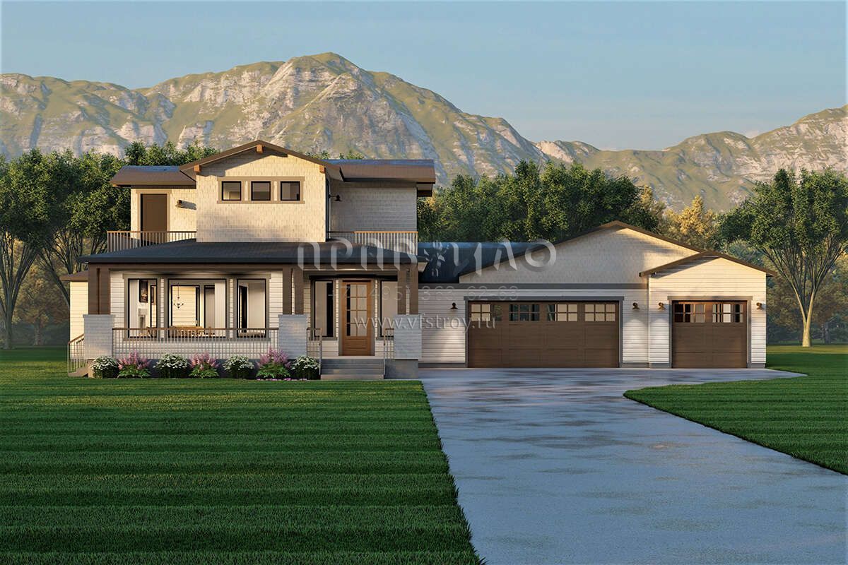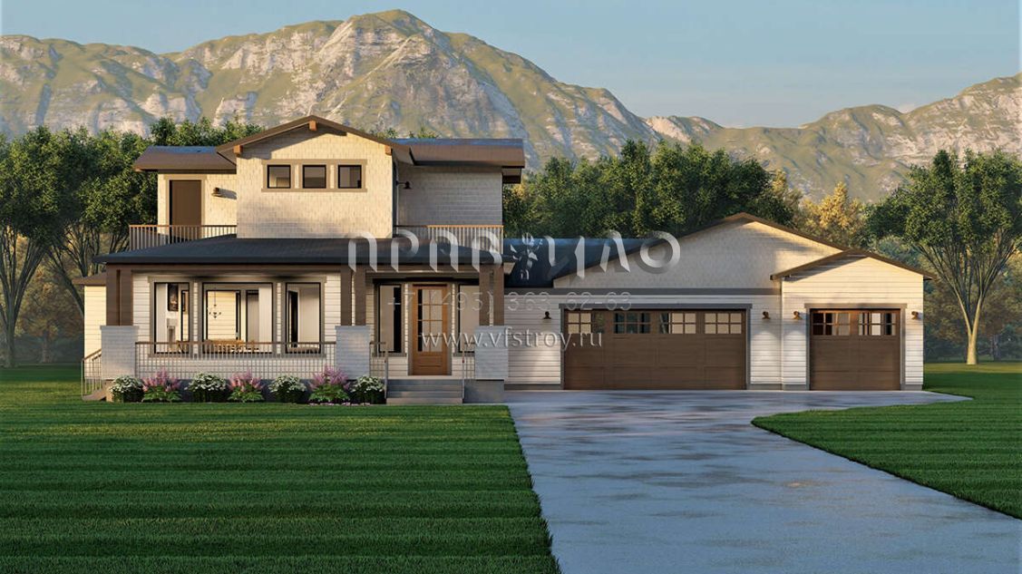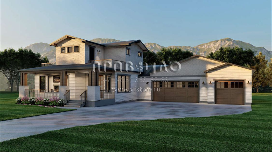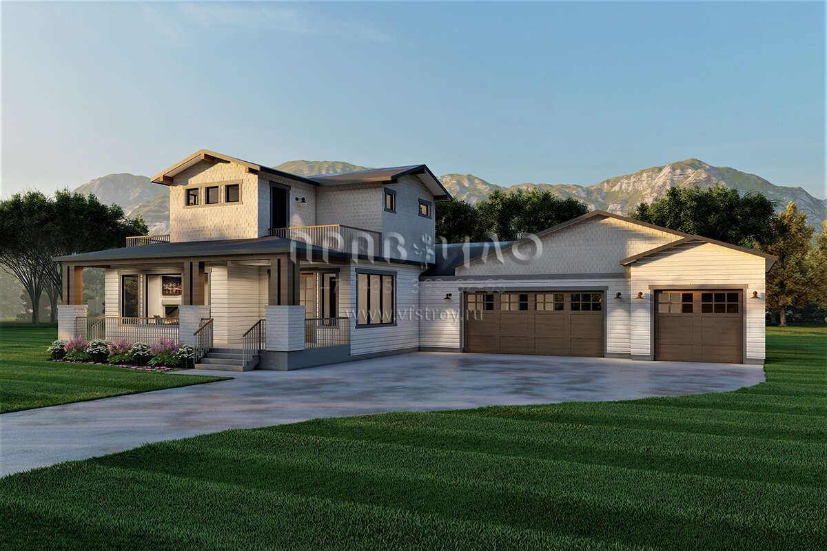 Проект двухэтажного дома с гаражом на три и более машин в американском стиле S5-237 (6422-00040)