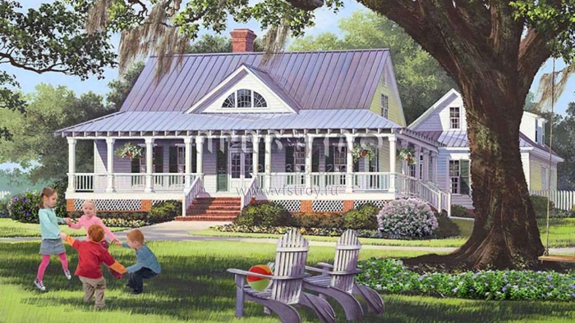 Проект двухэтажного дома с гаражом на две машины в стиле Ранчо S5-237 (7922-00232)