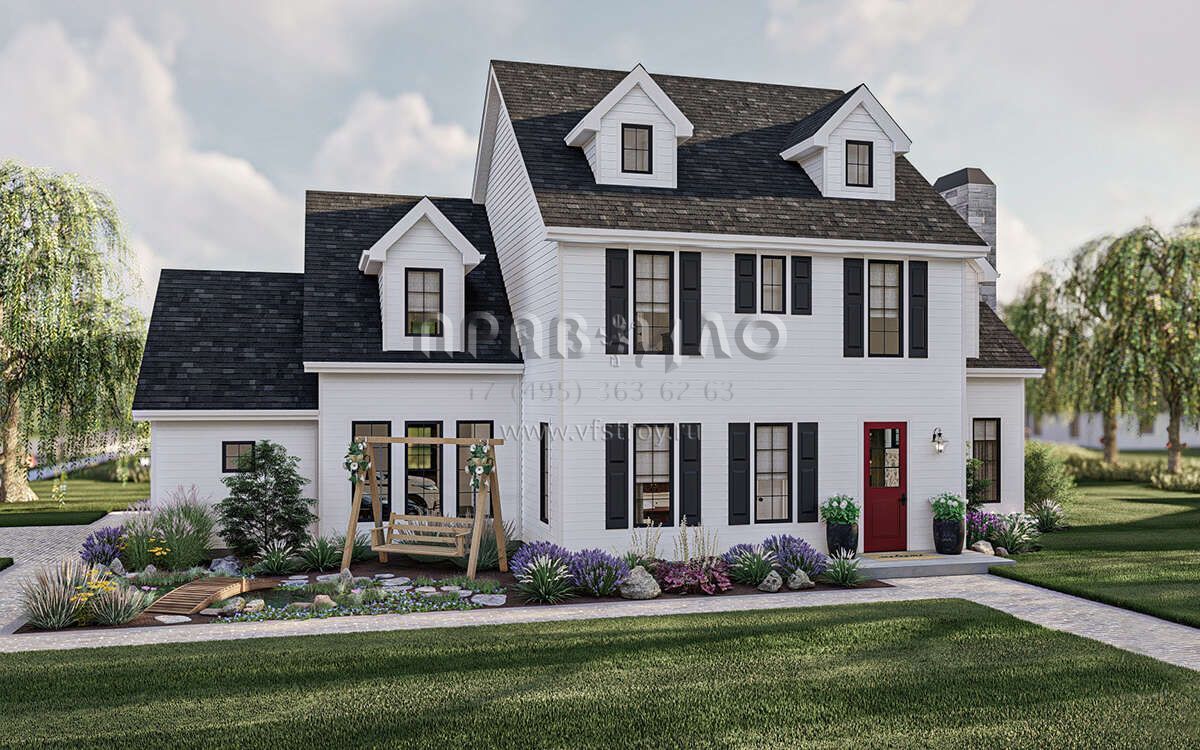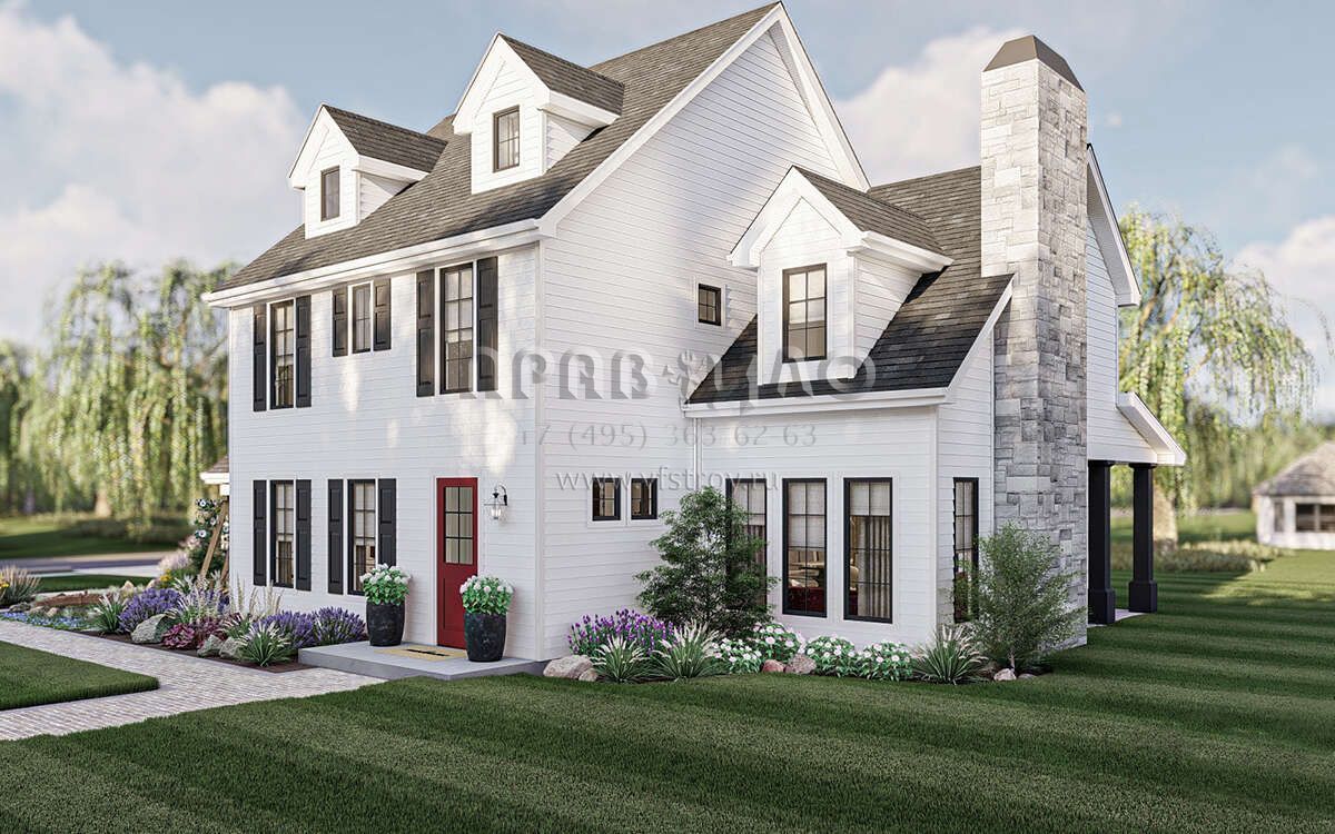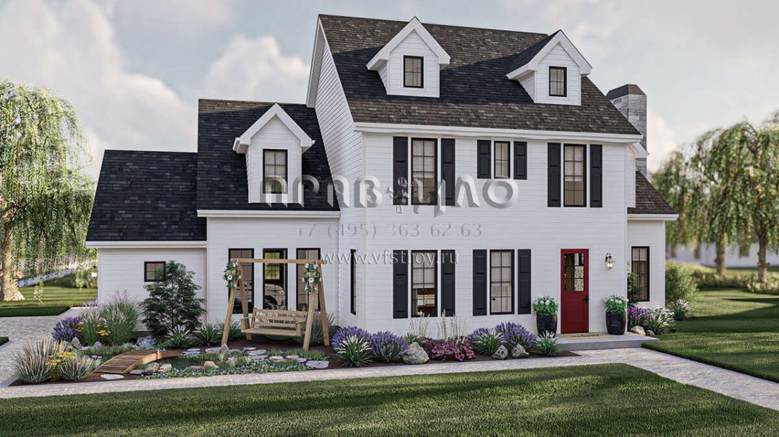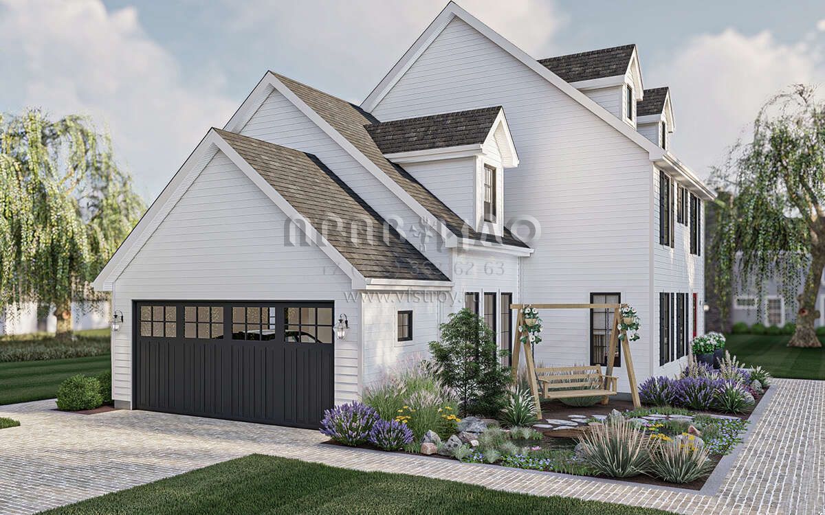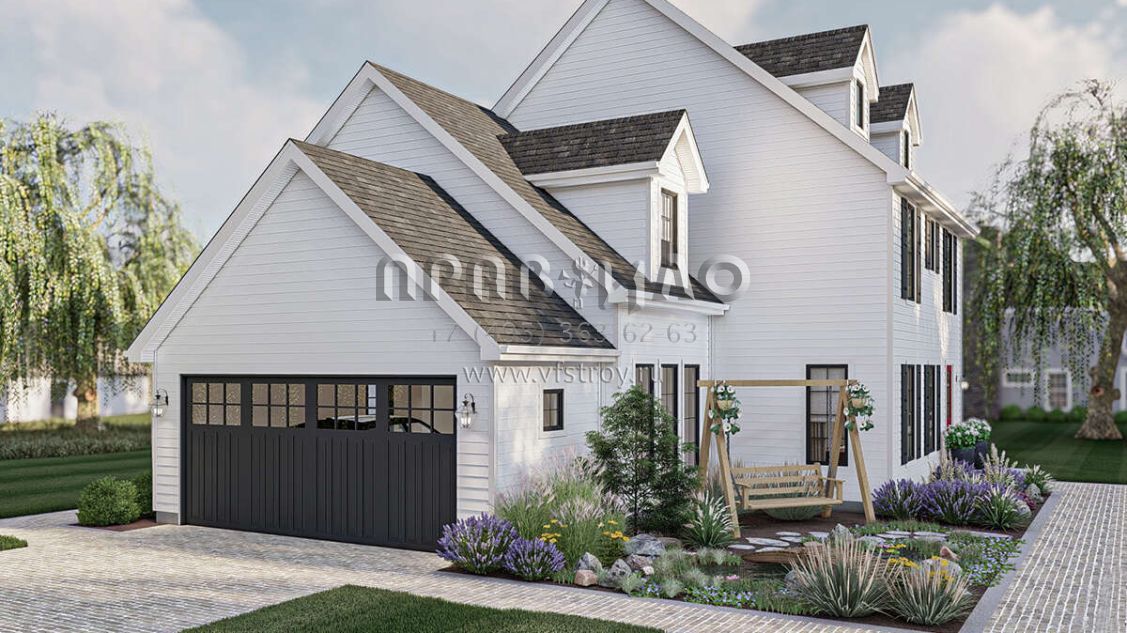 Проект двухэтажного дома с гаражом на две машины в стиле Особняк S5-237 (963-00835)