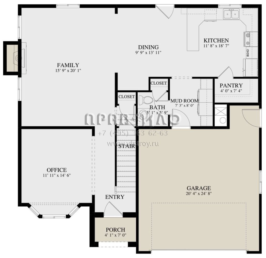 S5-238 (2802-00072) Это иностранный проект, для которого требуется адаптация под нормы, действующие в Российской Федерации. Вы видите проект дома в стиле Ранчо. В этом доме сочетаются черты сельской постройки и аскетичность лофта. Внутри жильцы смогут проводить время с максимальным комфортом. Обратим внимание, что сейчас на планировках все размеры представлены в футах. Для перевода в метры вам необходимо значение в футах умножить на 0,3048.