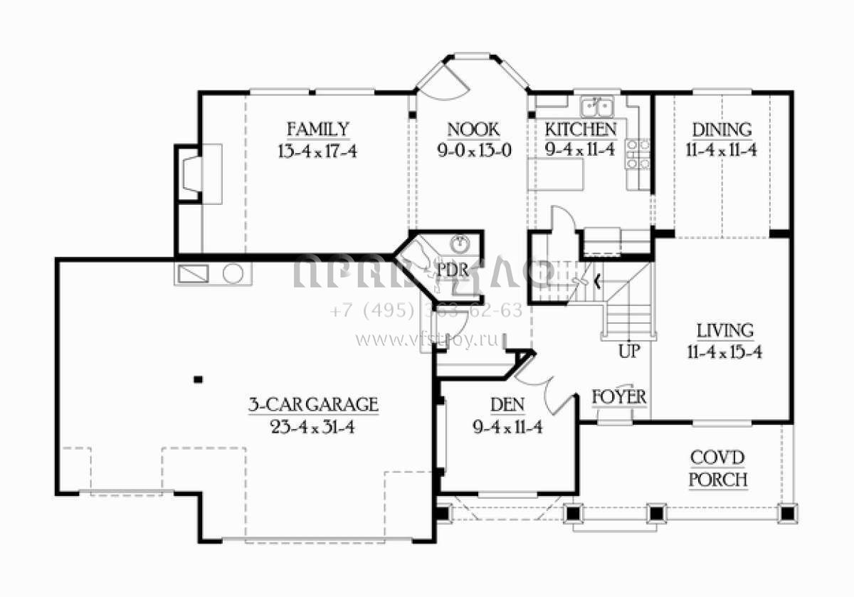 S5-238 (341-00035) Это иностранный проект, для которого требуется адаптация под нормы, действующие в Российской Федерации. Вы видите проект дома в американском стиле. В этом доме сочетаются черты сельской постройки и аскетичность лофта. Внутри жильцы смогут проводить время с максимальным комфортом. Обратим внимание, что сейчас на планировках все размеры представлены в футах. Для перевода в метры вам необходимо значение в футах умножить на 0,3048.