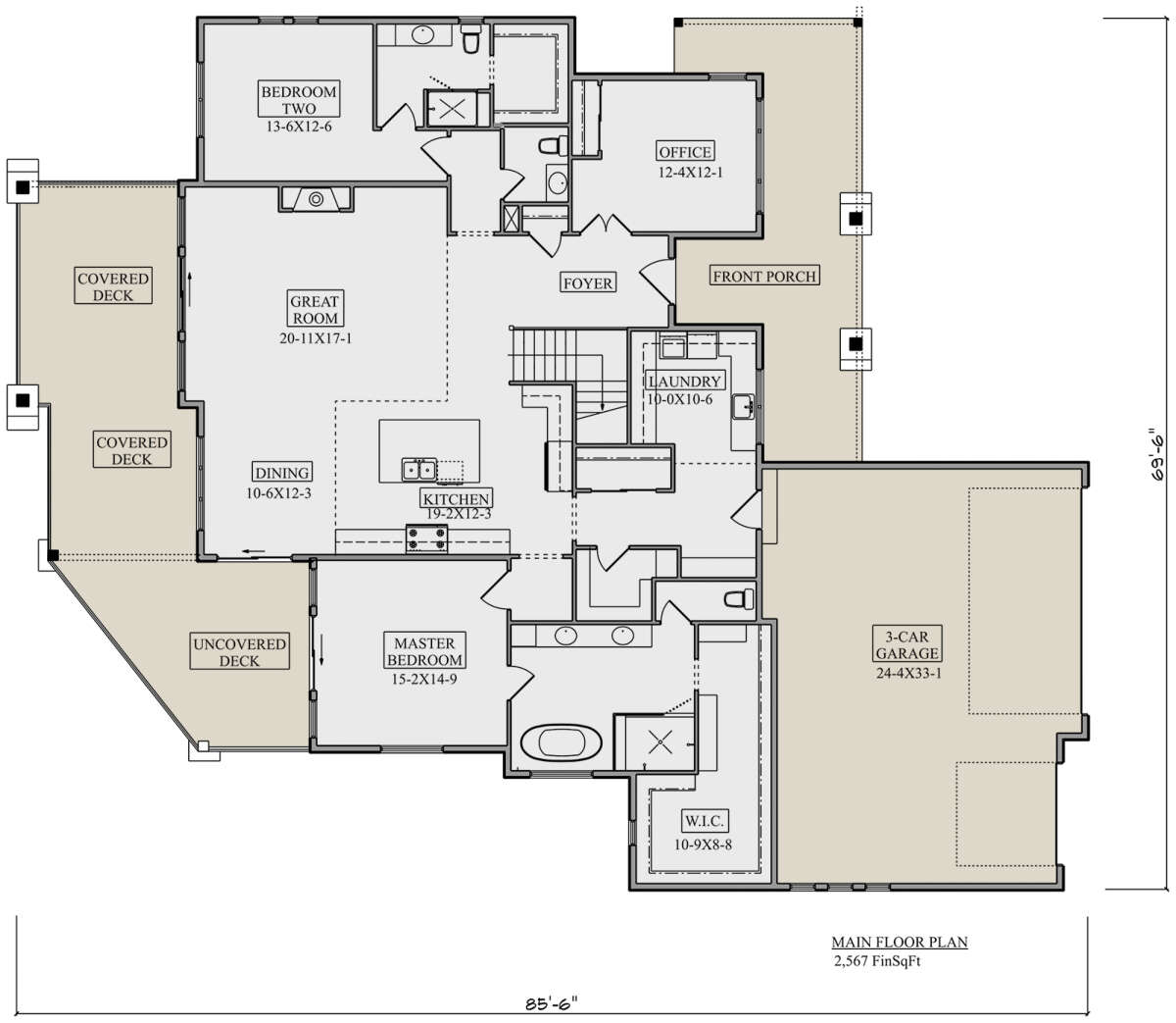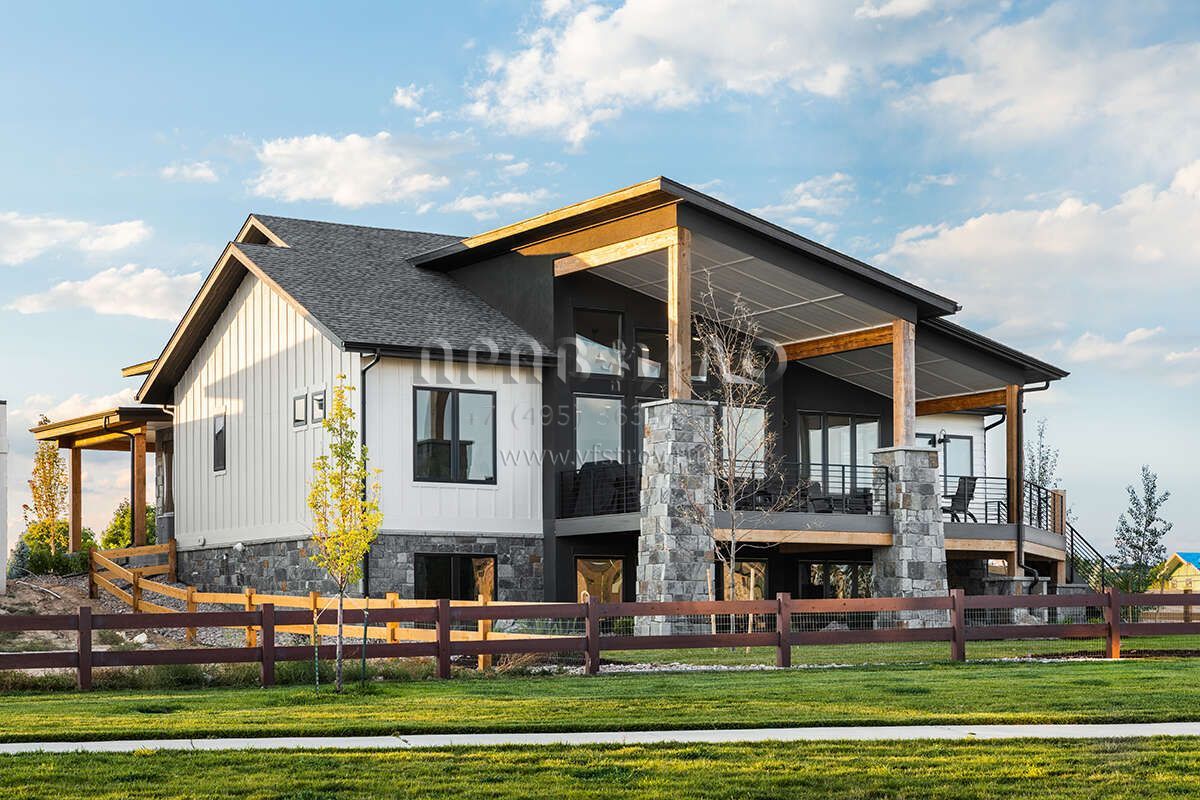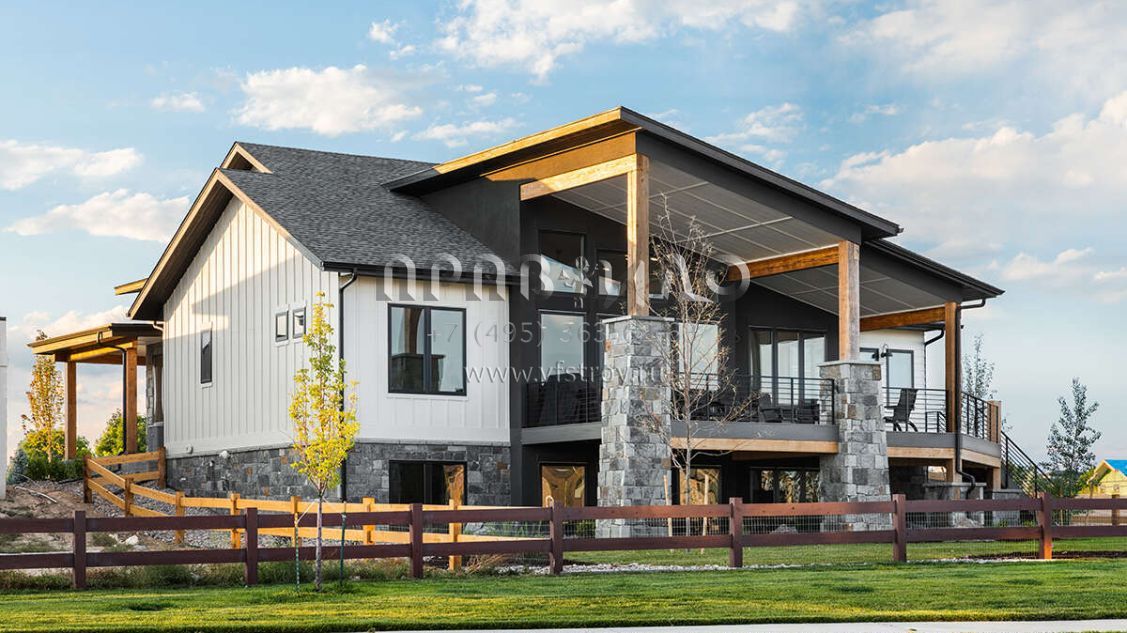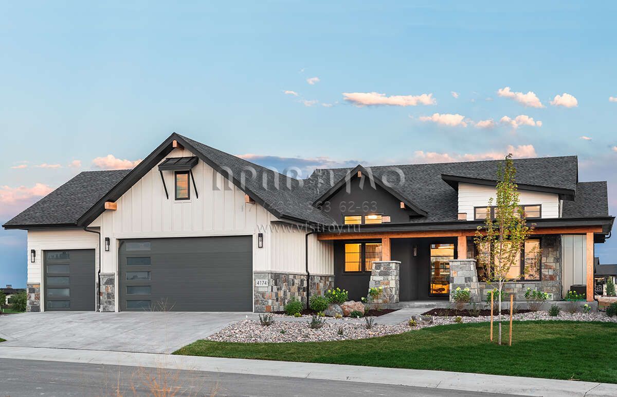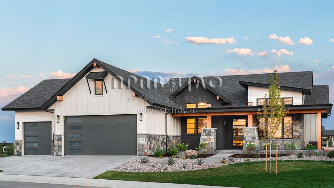 Проект одноэтажного дома с гаражом на три и более машин в американском стиле S5-238 (5631-00193)