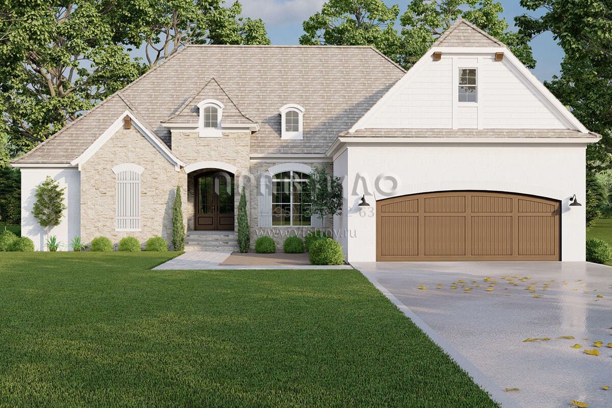 Проект одноэтажного дома с гаражом на две машины в английском стиле S5-238 (8318-00311)