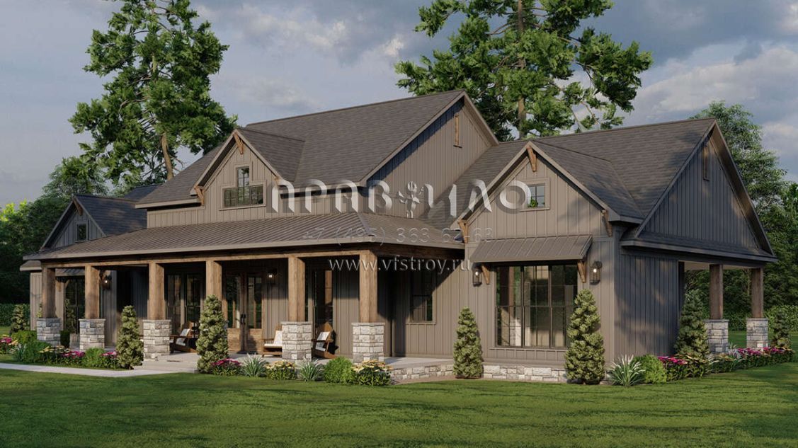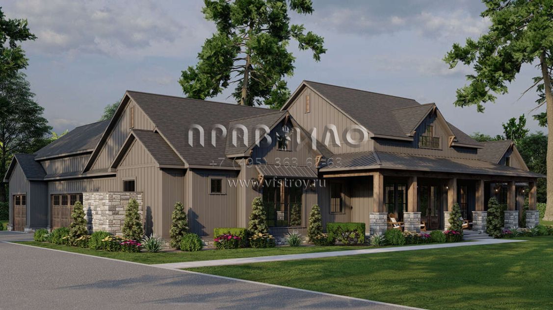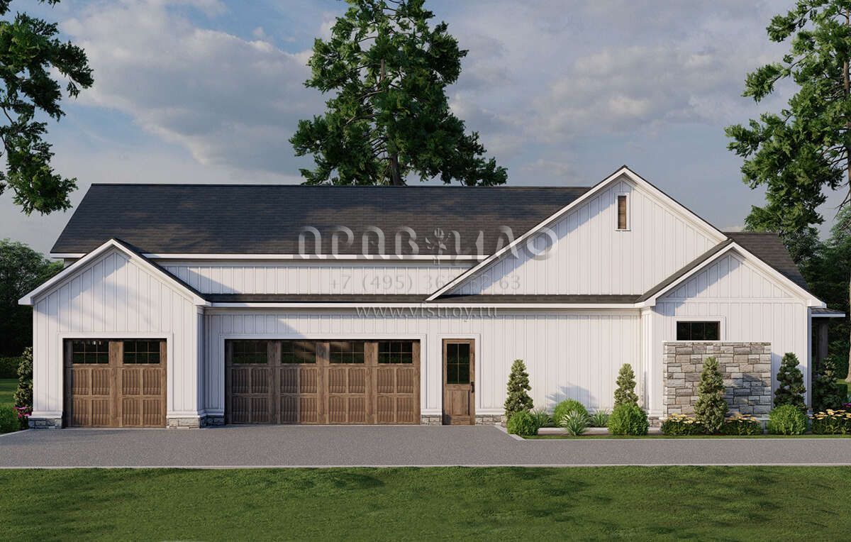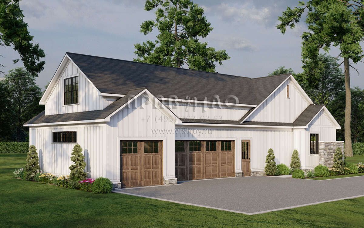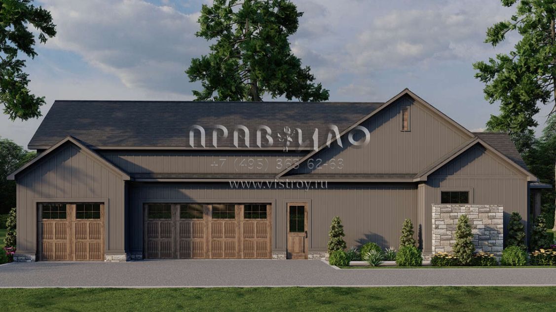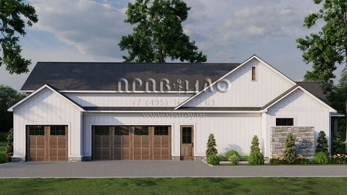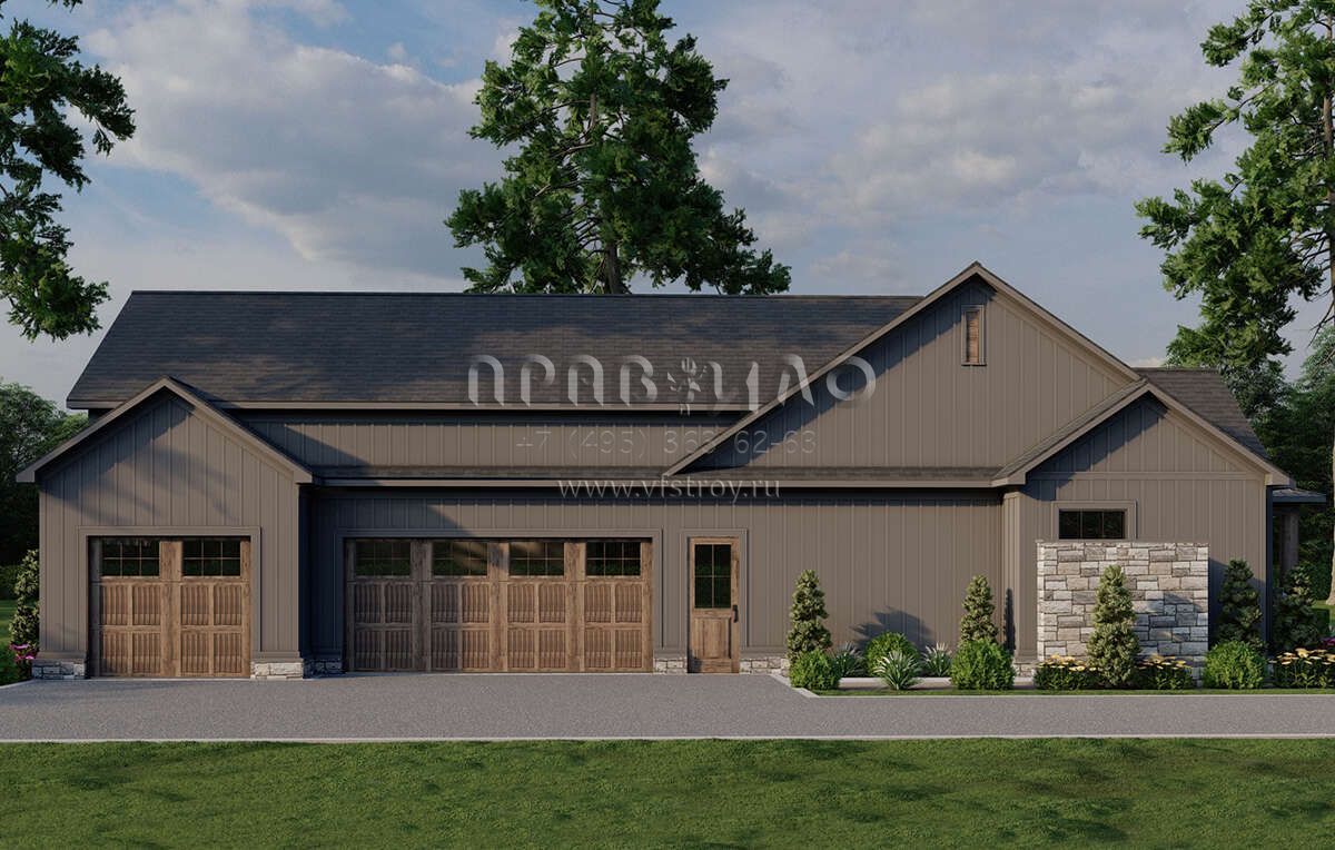 Проект одноэтажного дома с гаражом на три и более машин в современном стиле S5-238 (8318-00383)