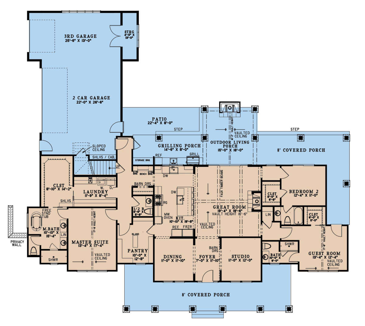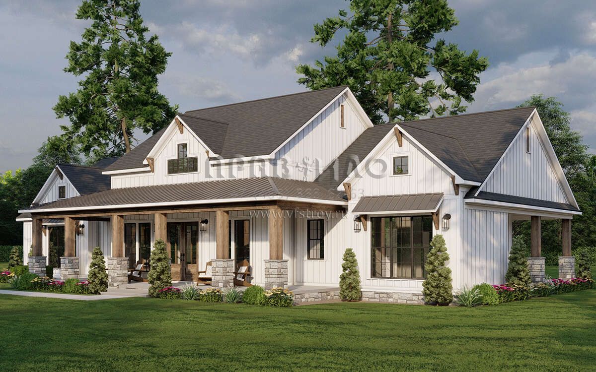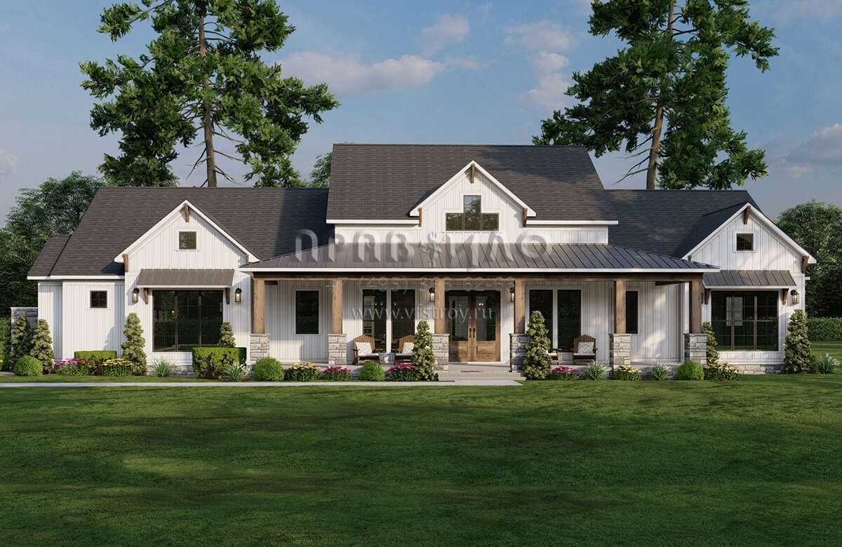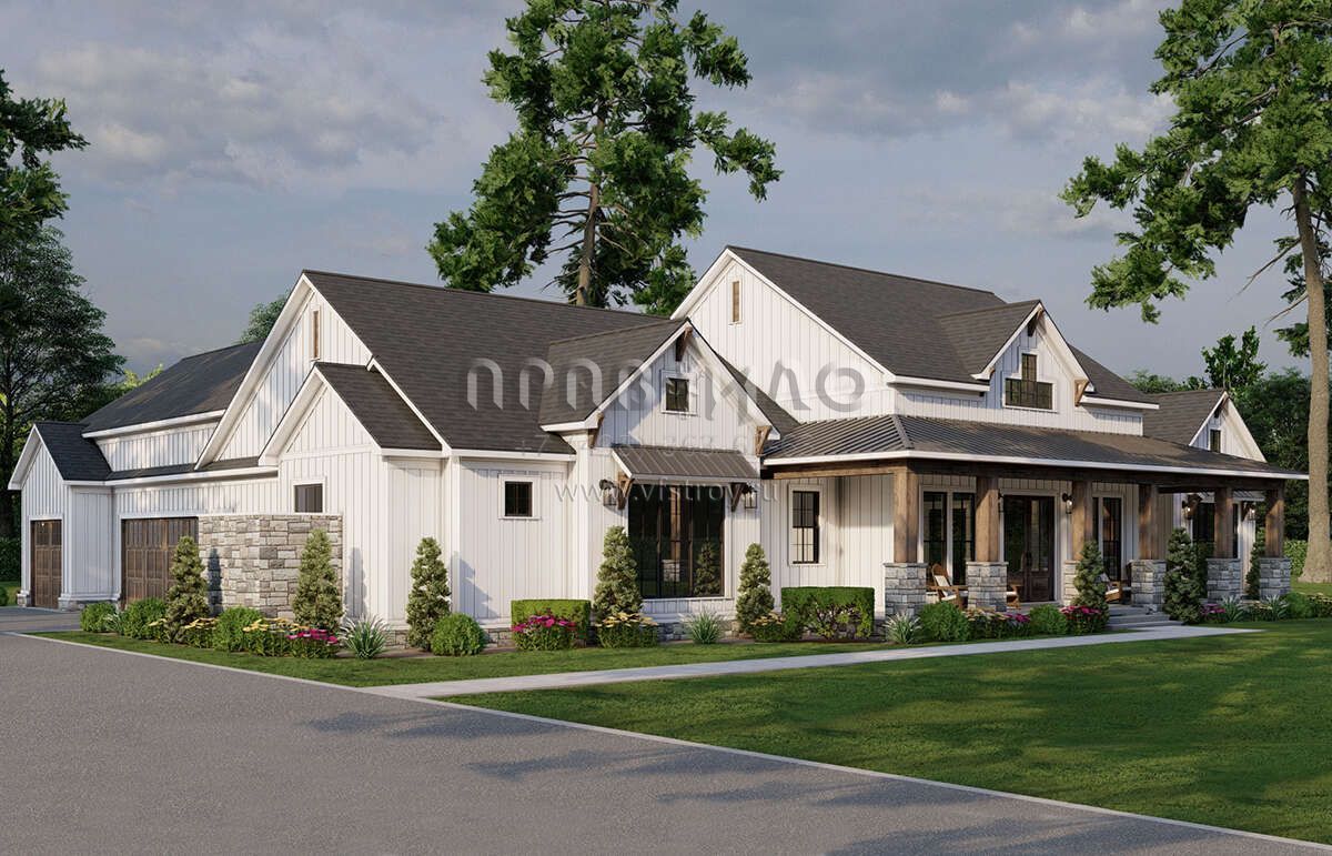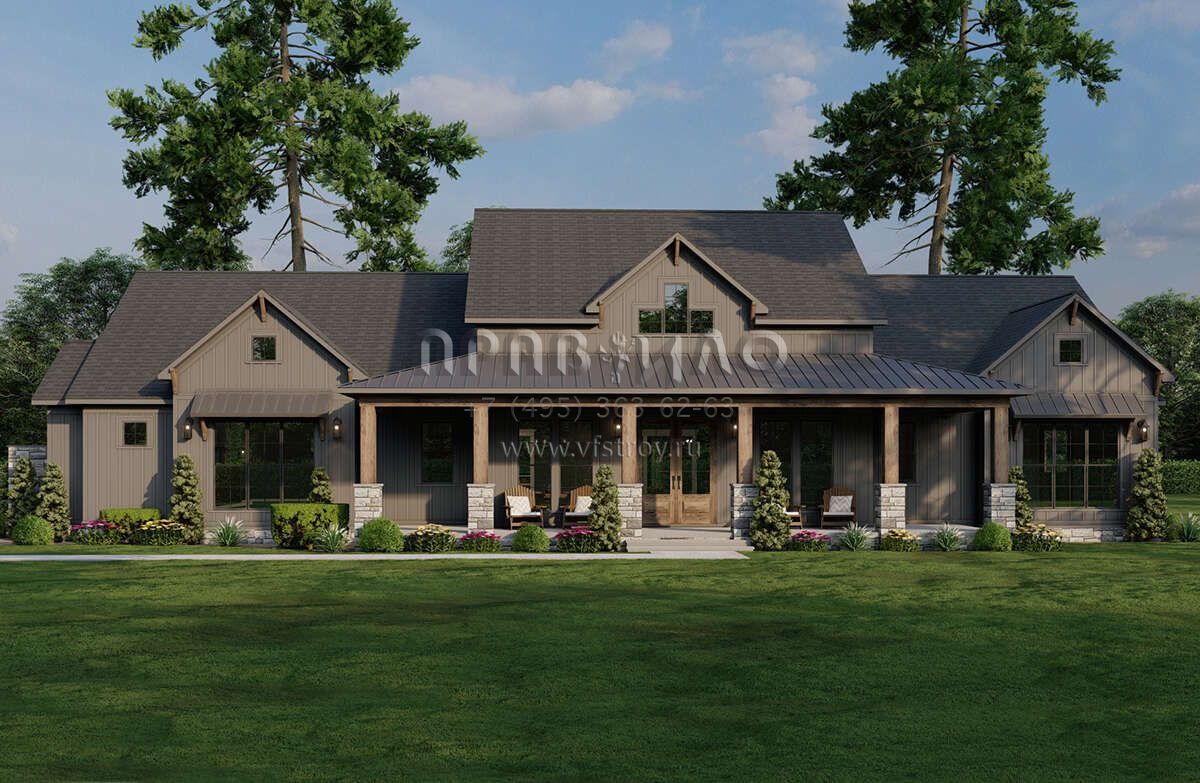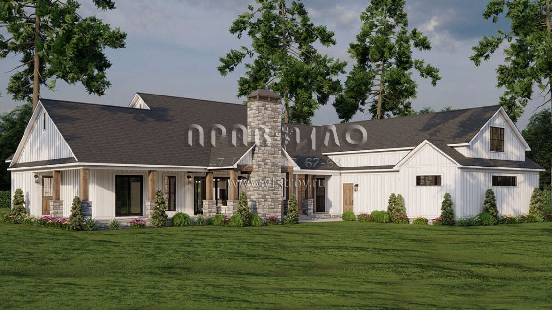 Проект одноэтажного дома с гаражом на три и более машин в современном стиле S5-238 (8318-00383)