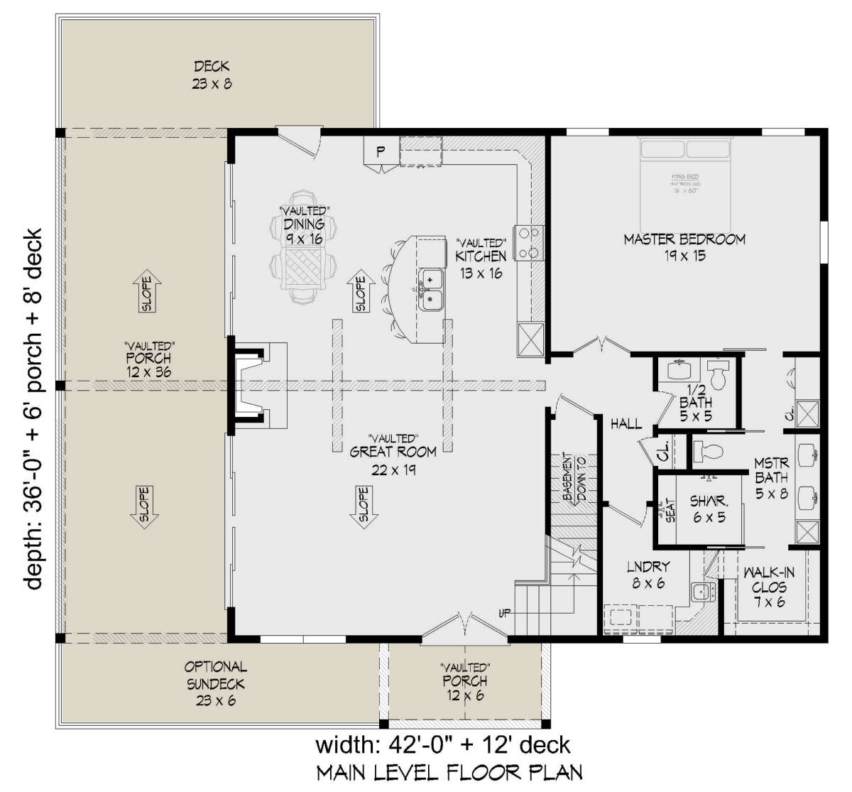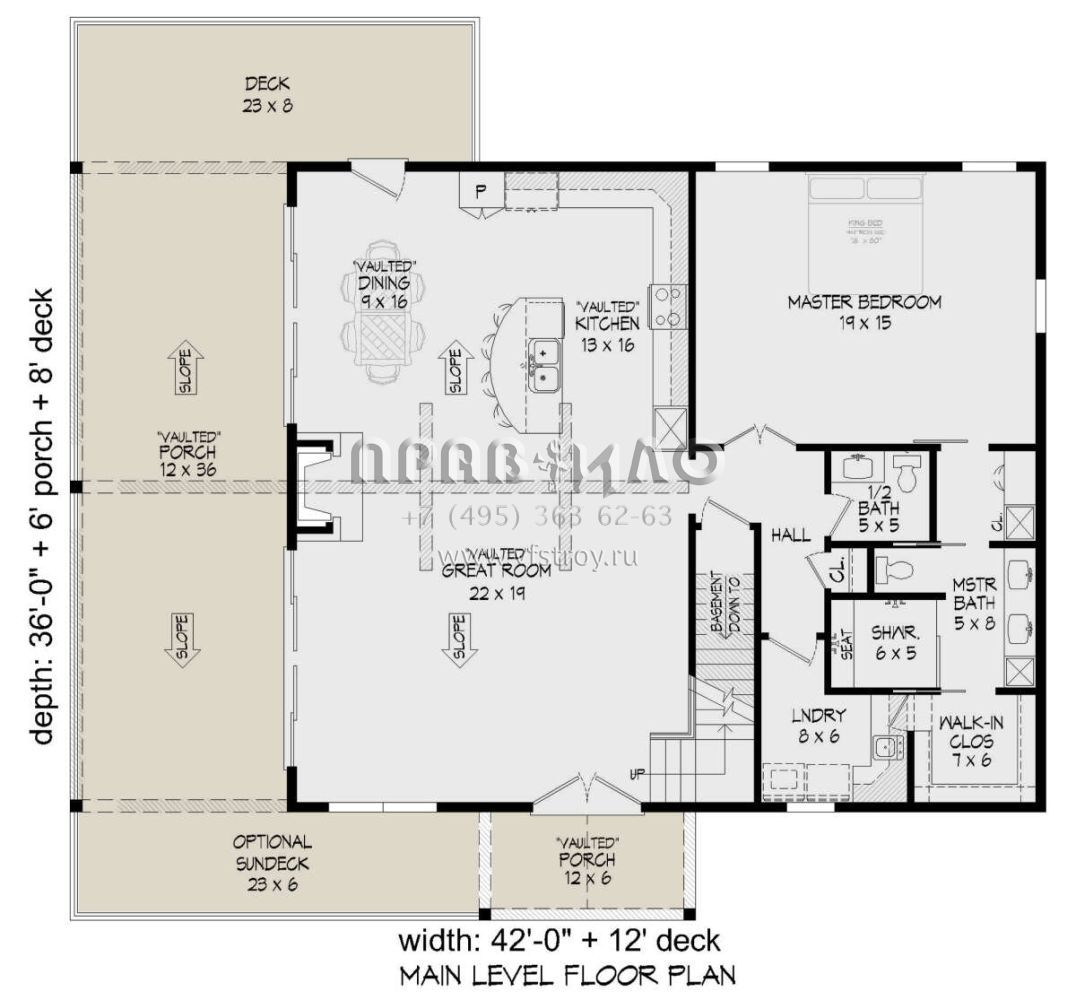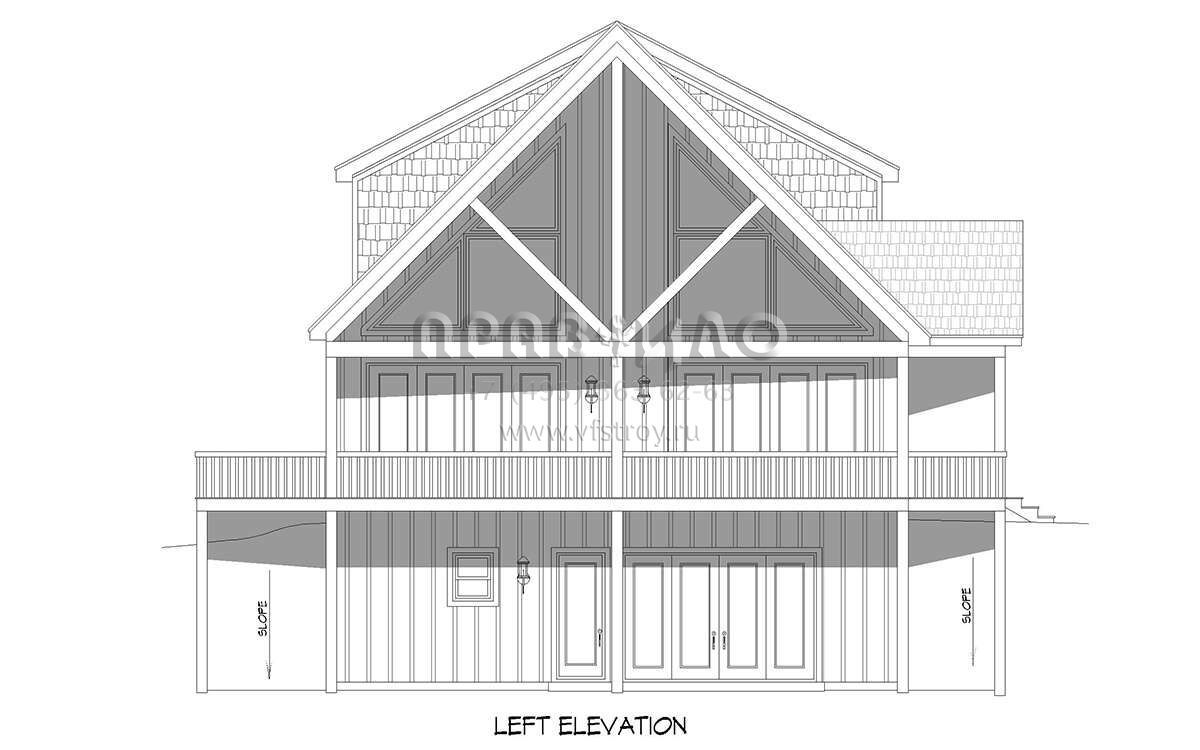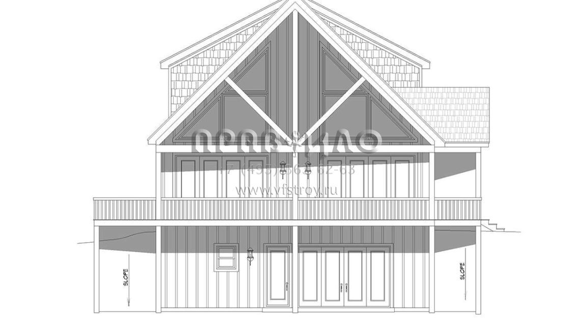 S5-238 (940-00852) Это иностранный проект, для которого требуется адаптация под нормы, действующие в Российской Федерации. Вы видите проект дома в стиле Шале. В этом доме сочетаются черты сельской постройки и аскетичность лофта. Внутри жильцы смогут проводить время с максимальным комфортом. Обратим внимание, что сейчас на планировках все размеры представлены в футах. Для перевода в метры вам необходимо значение в футах умножить на 0,3048.