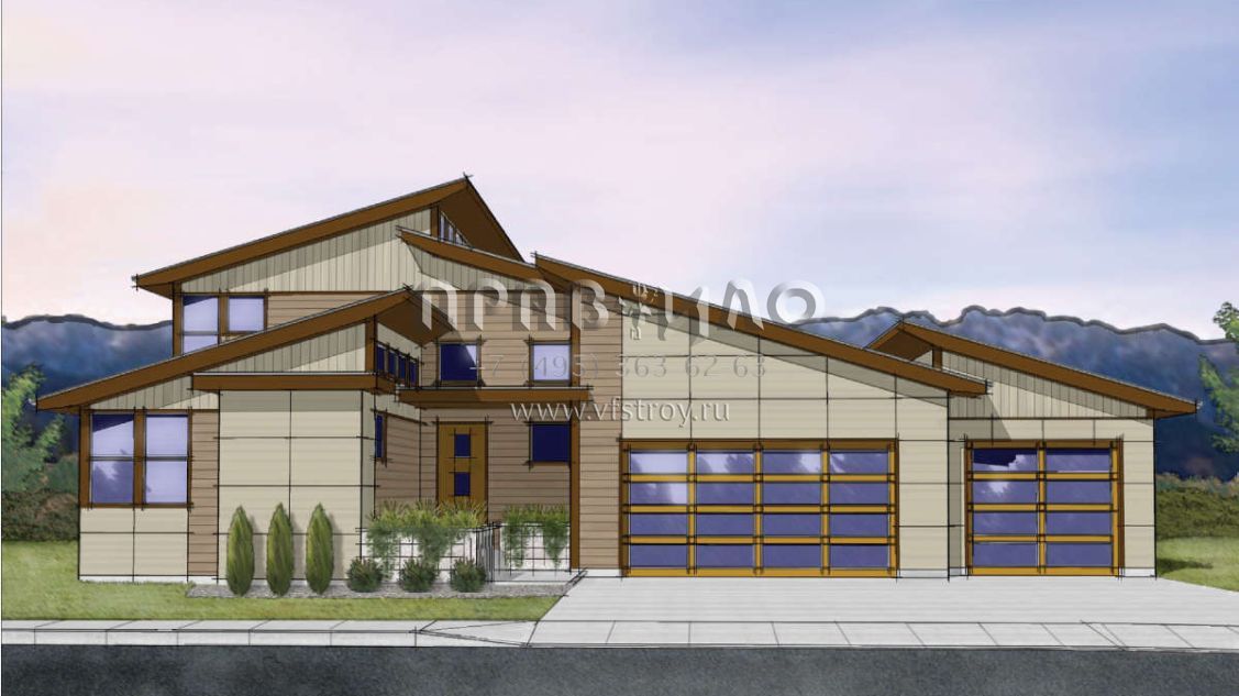 Проект двухэтажного дома с гаражом на три и более машин в современном стиле S5-238 (9488-00024)
