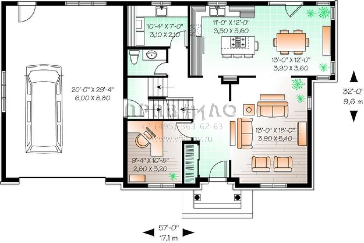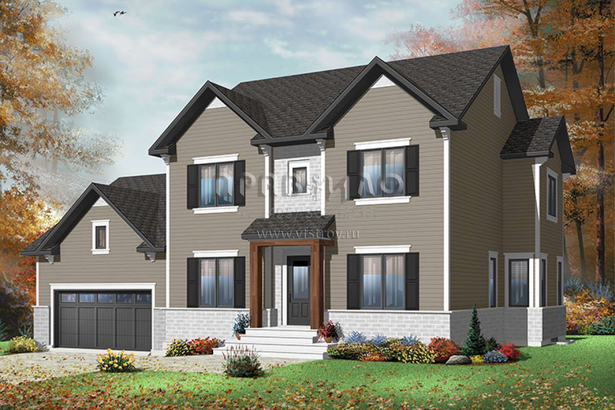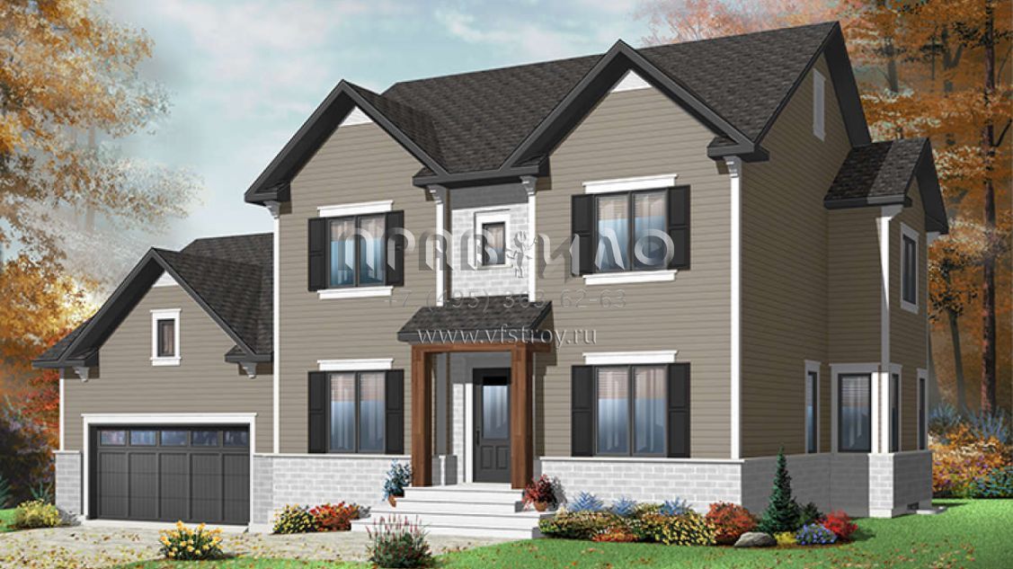 Проект двухэтажного дома с гаражом на две машины в стиле Ранчо S5-239 (034-00761)
