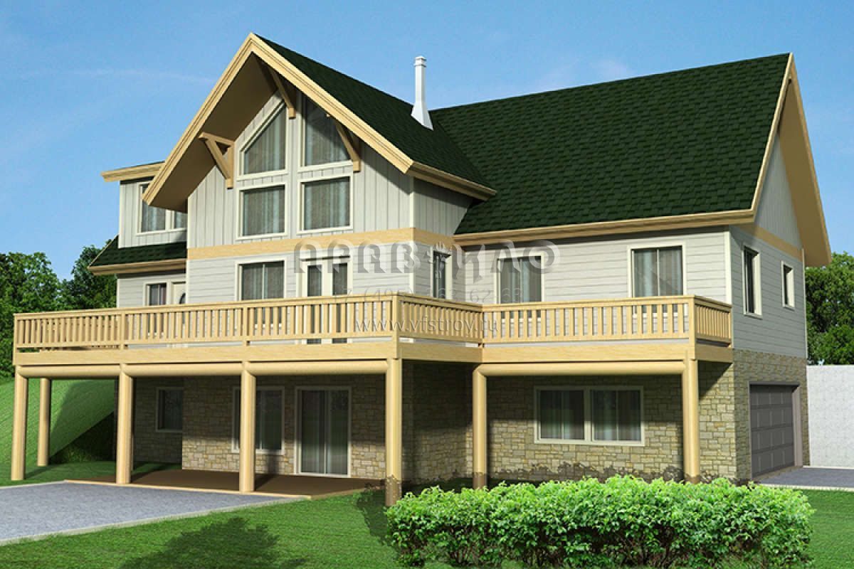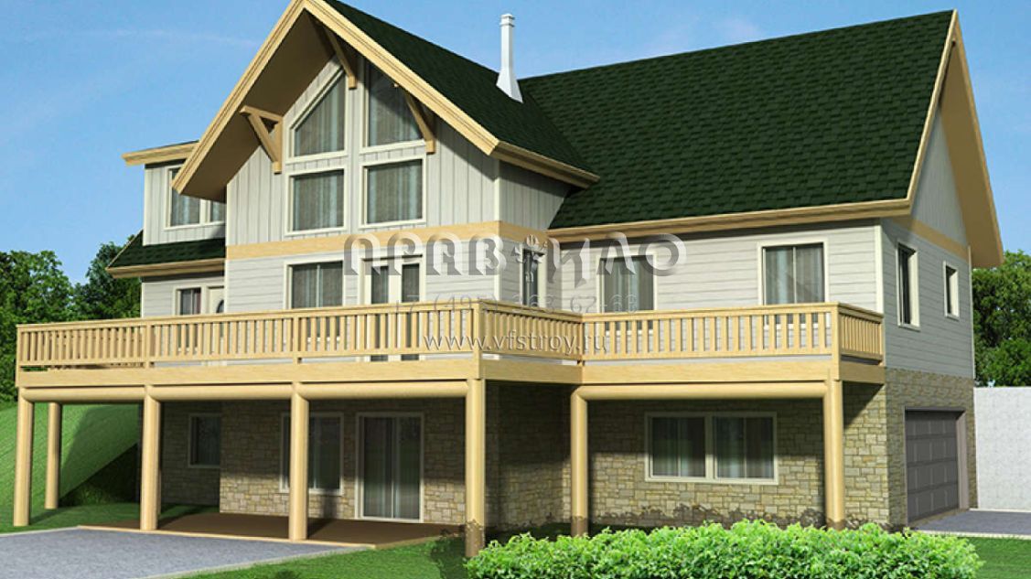 Проект двухэтажного дома с гаражом на две машины в стиле Шале S5-239 (039-00614)
