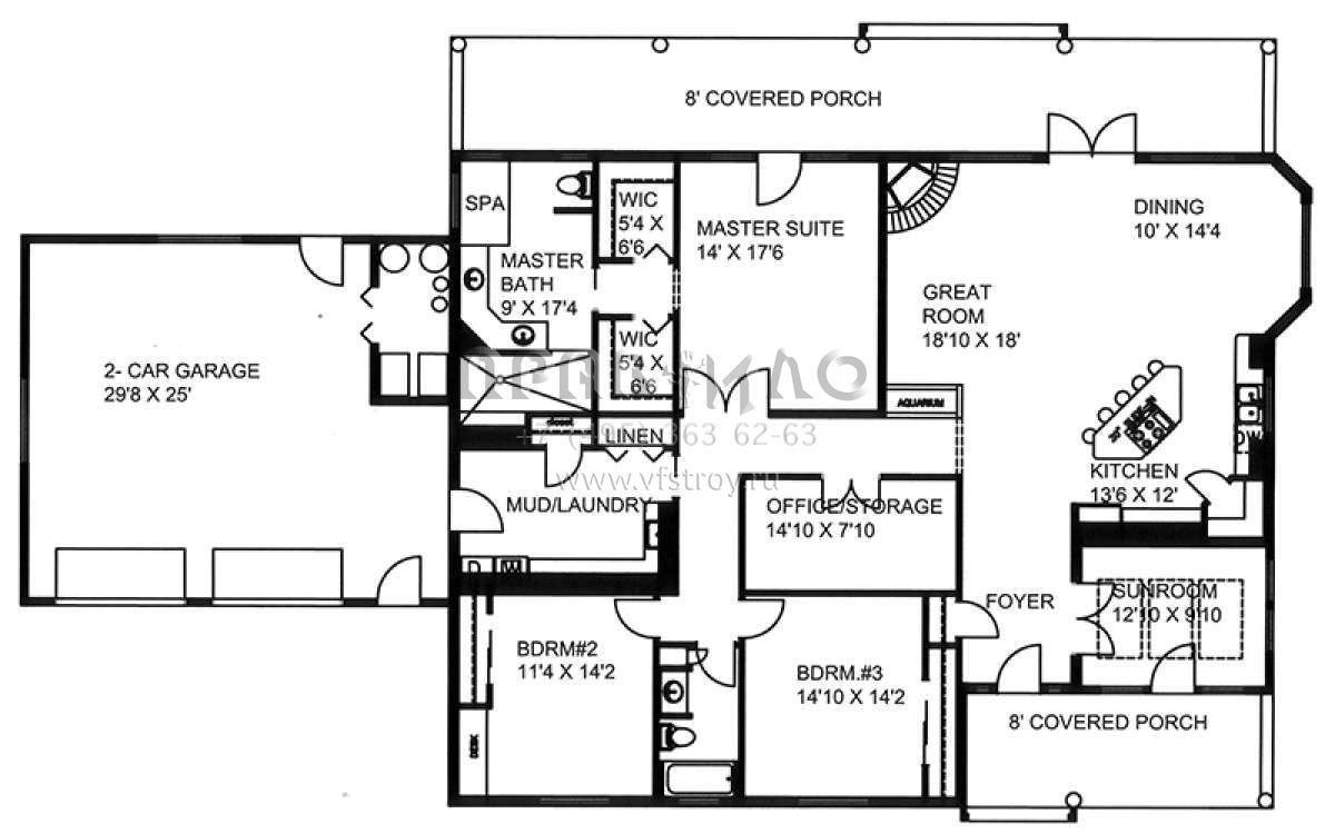 Проект одноэтажного дома с гаражом на две машины в стиле Ранчо S5-239 (039-00655)