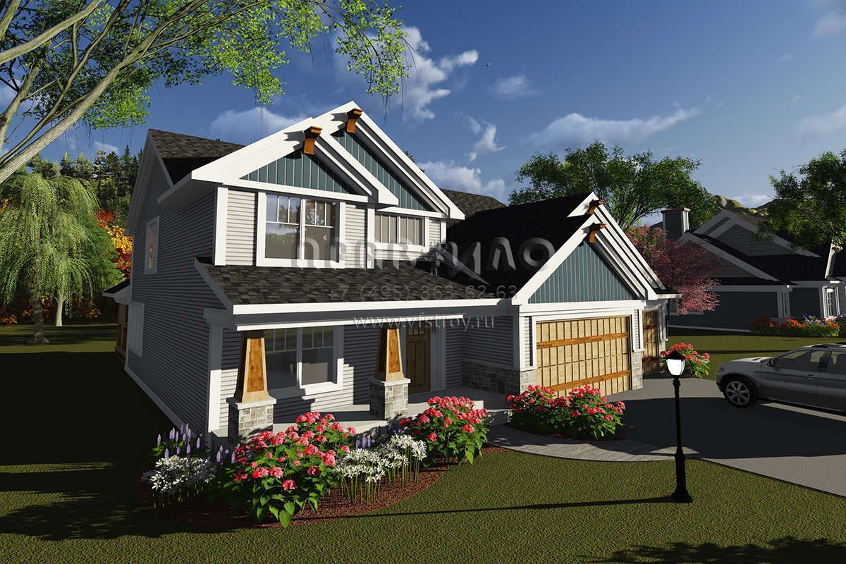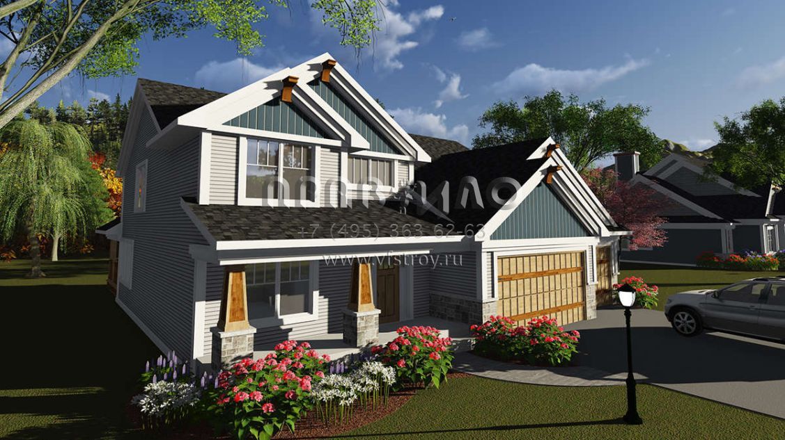 Проект двухэтажного дома с гаражом на три и более машин в американском стиле S5-239 (1020-00129)
