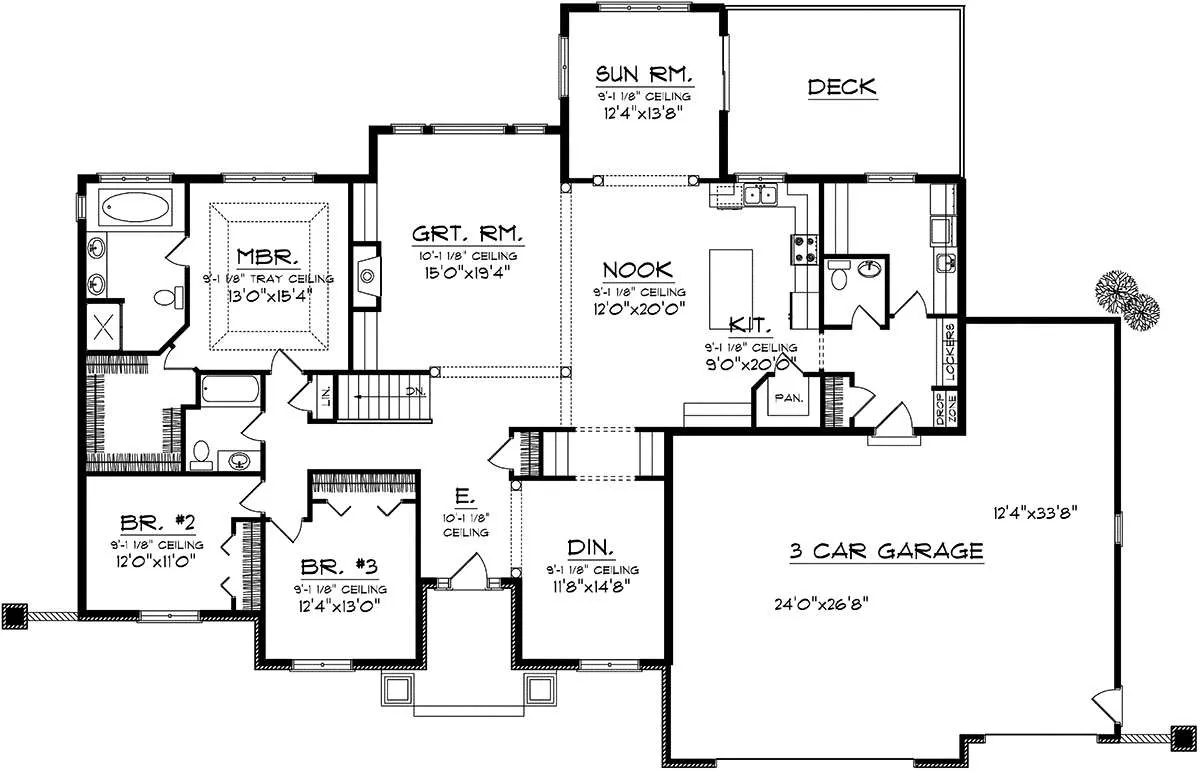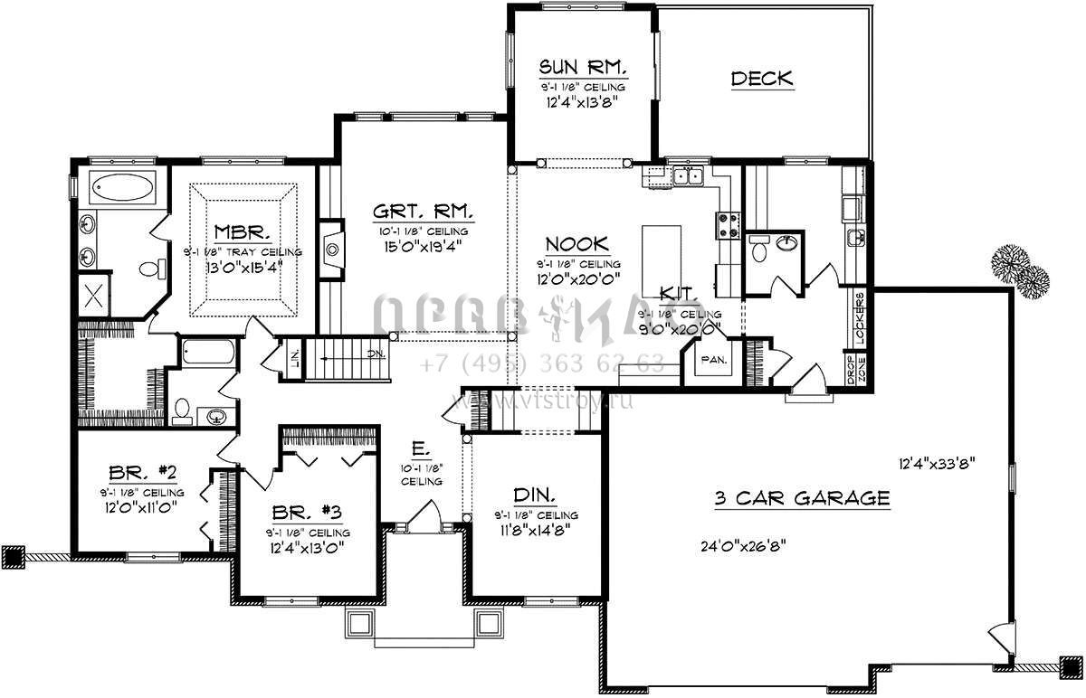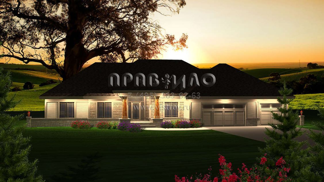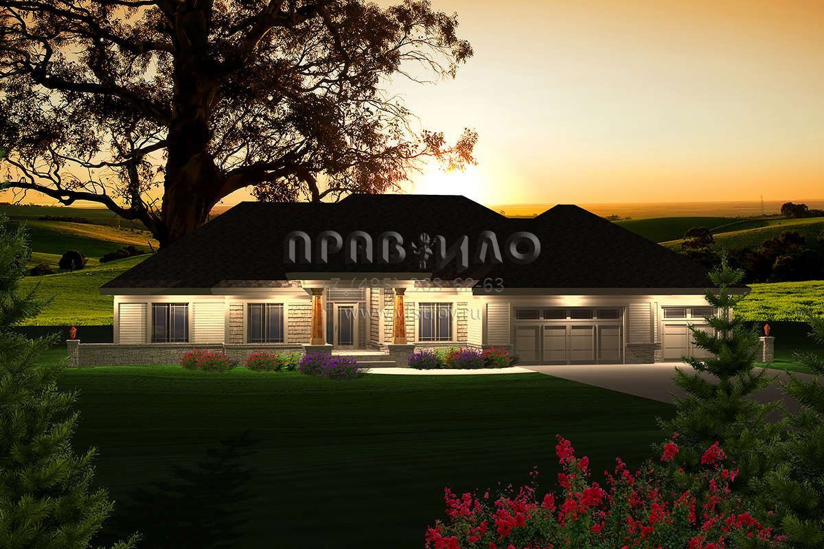 Проект одноэтажного дома с гаражом на три и более машин в стиле Ранчо S5-239 (1020-00194)