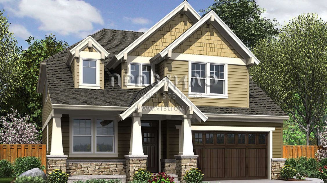 Проект двухэтажного дома с гаражом на три и более машин в американском стиле S5-239 (2559-00732)