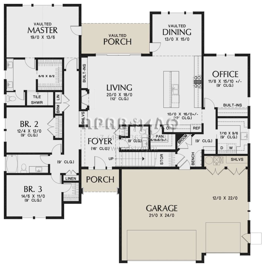 Проект одноэтажного дома с гаражом на три и более машин в современном стиле S5-239 (2559-00841)
