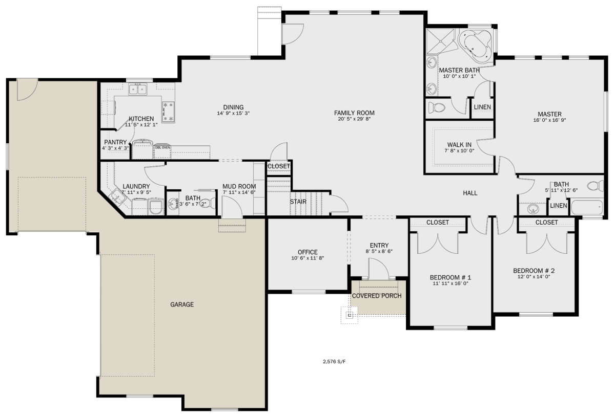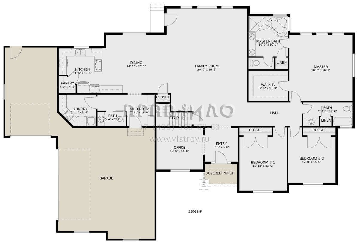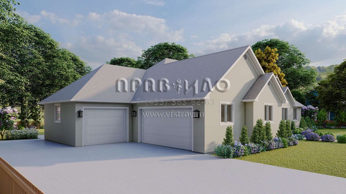 Проект одноэтажного дома с гаражом на три и более машин в стиле Ранчо S5-239 (2802-00259)