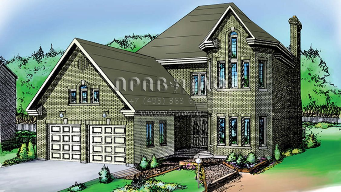 Проект двухэтажного дома с гаражом на две машины в английском стиле S5-239 (6146-00069)