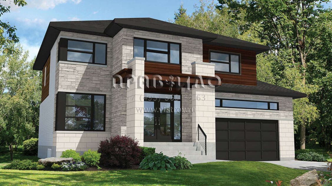 Проект двухэтажного дома с гаражом на две машины в современном стиле S5-239 (6146-00511)
