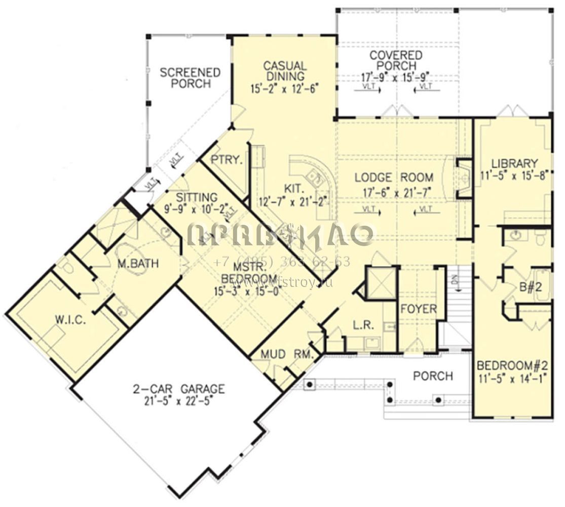 Проект одноэтажного дома с гаражом на две машины в американском стиле S5-239 (699-00159)