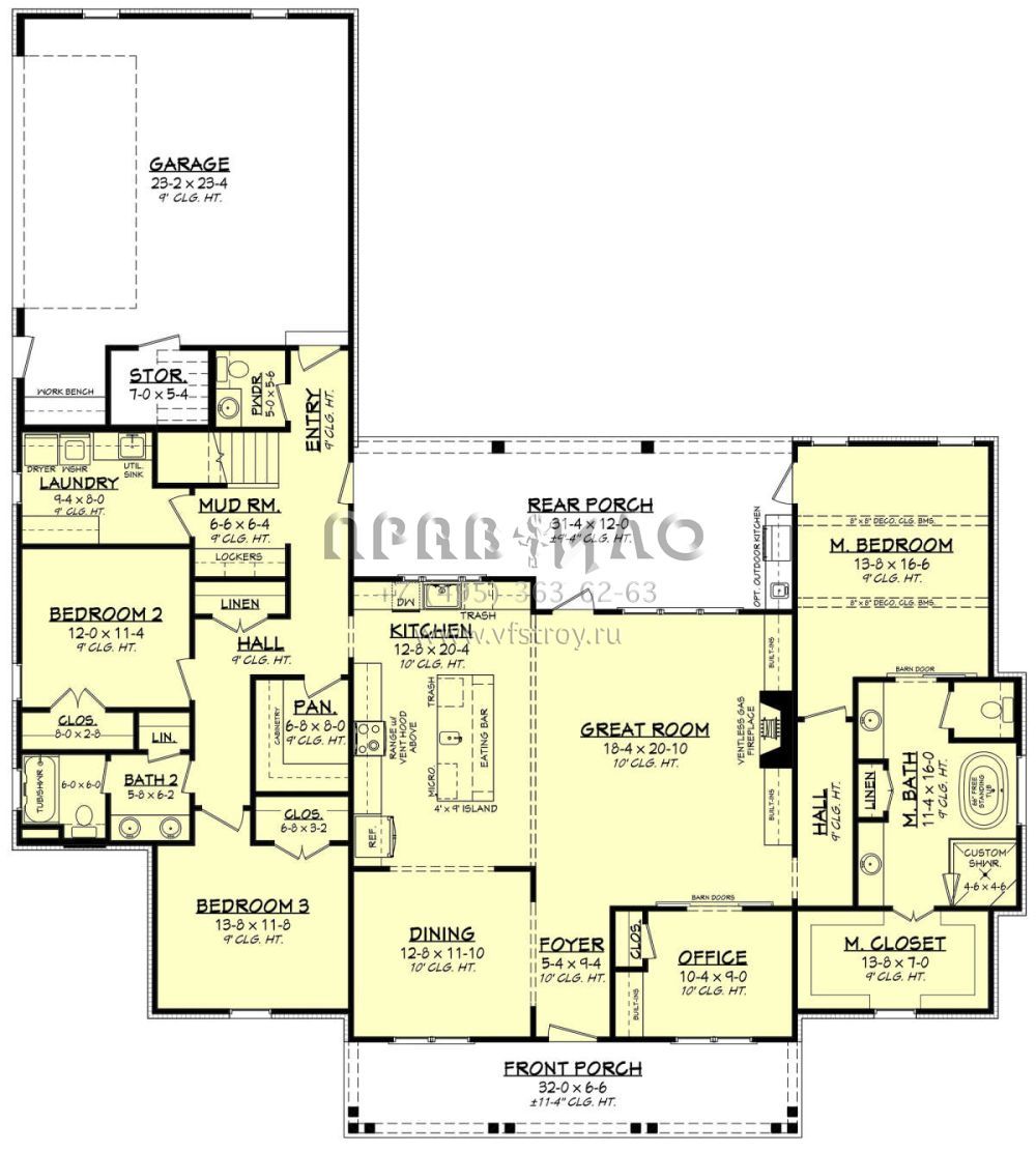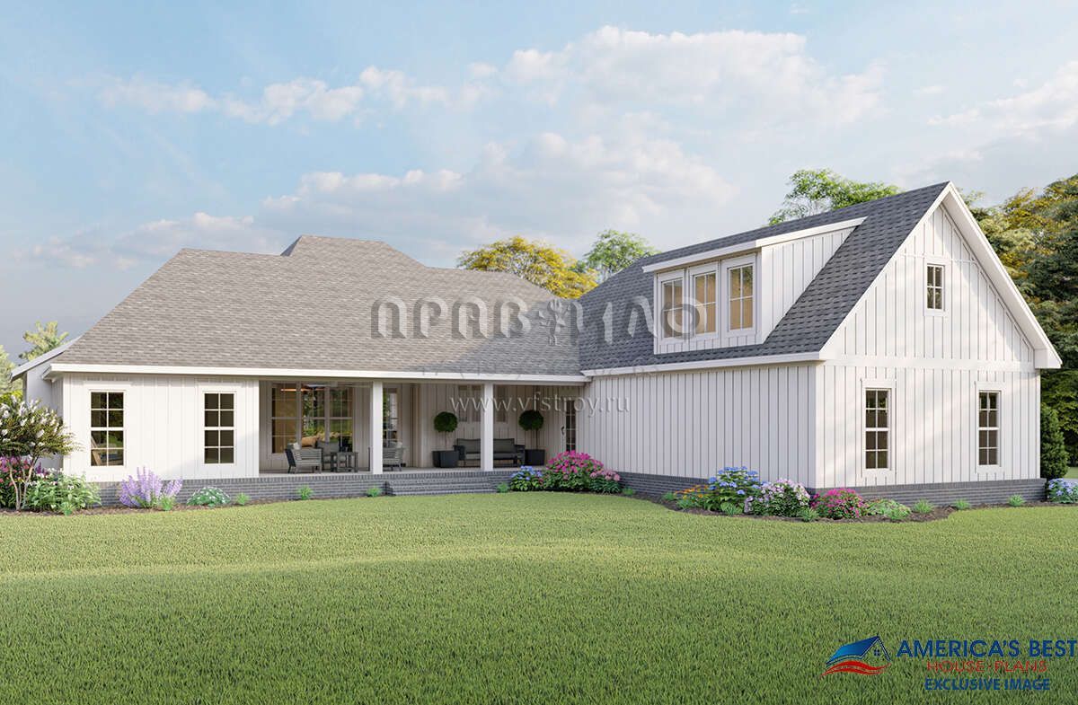 Поскольку этот проект разрабатывался иностранными архитекторами, для строительства дома требуется переработка проекта под действующие в России нормы. Данные визуализации проекта представлены для ознакомления с концепцией проекта. Проект разработан американским архитектурным бюро и представлен America's Best House Plans.