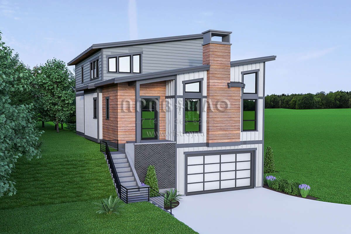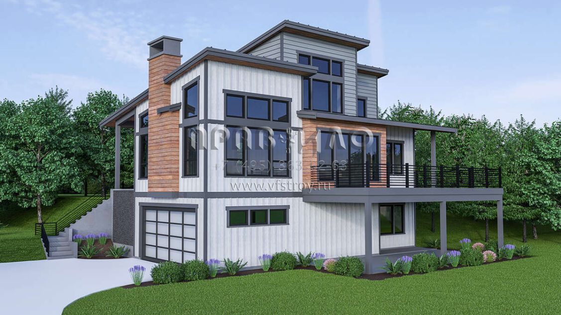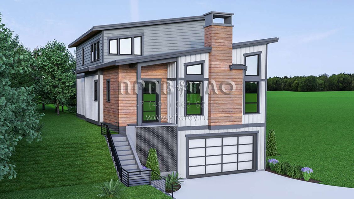 Проект двухэтажного дома с гаражом на две машины в современном стиле S5-240 (2464-00023)