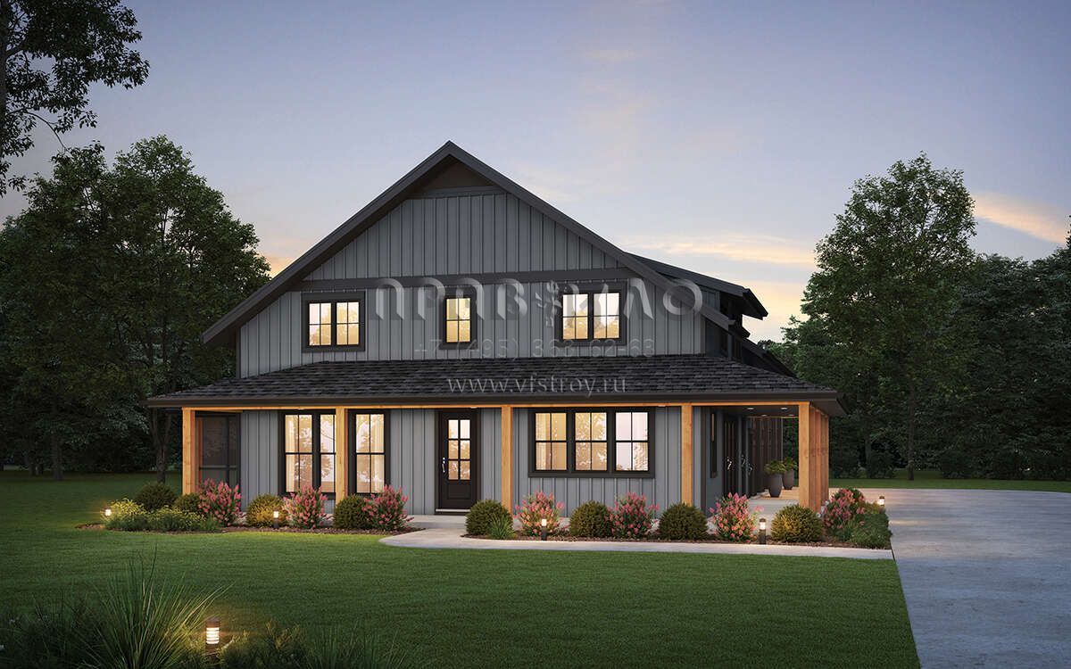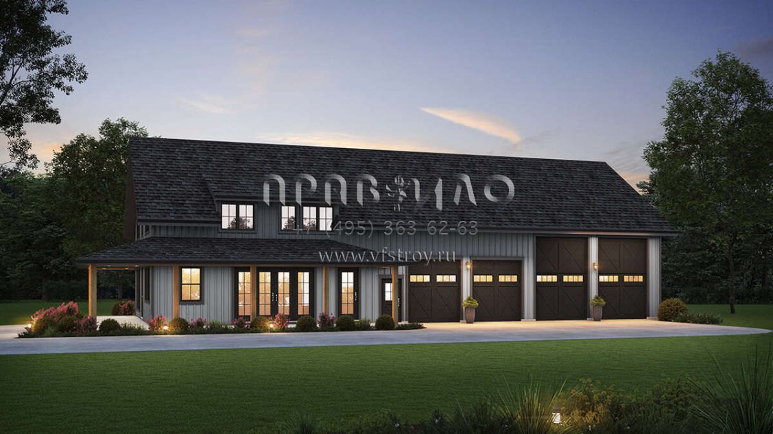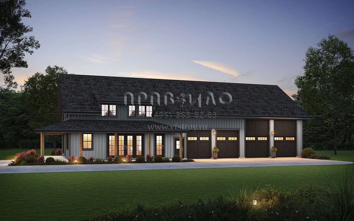 Проект двухэтажного дома с гаражом на три и более машин в стиле БарнХаус S5-240 (2559-01003)