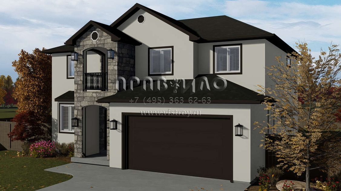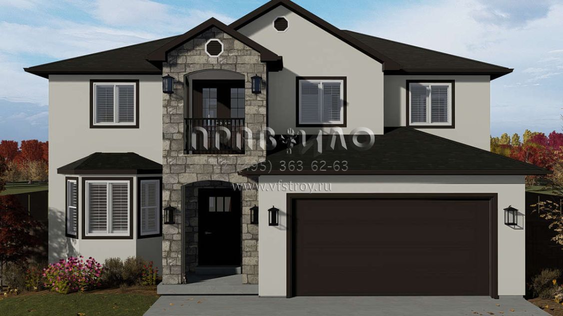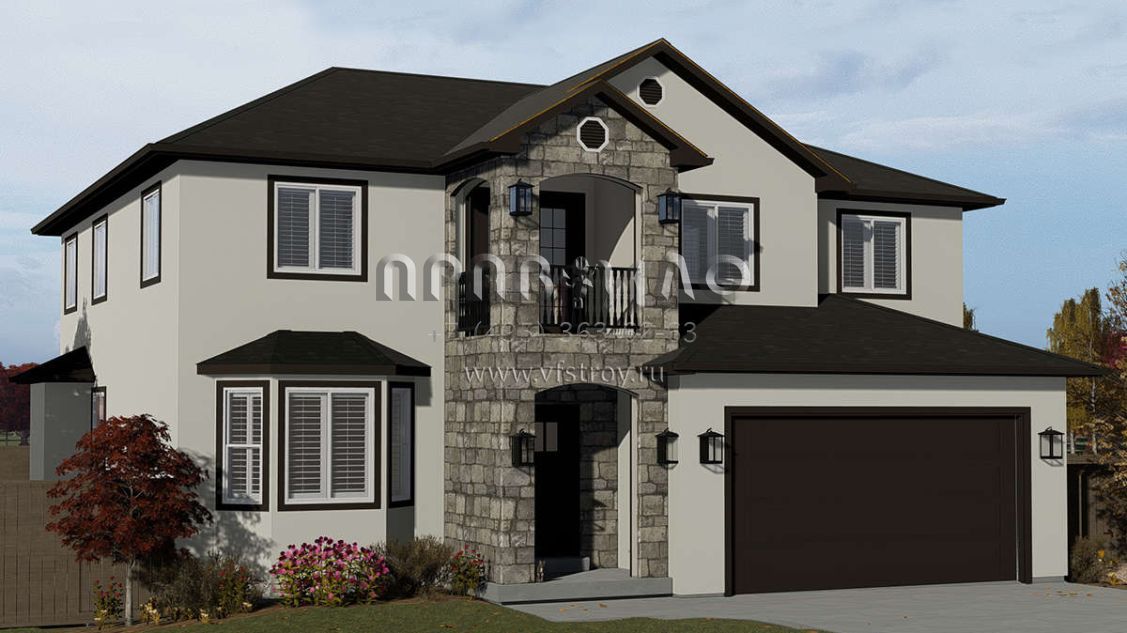 Проект двухэтажного дома с гаражом на две машины в стиле Ранчо S5-240 (2802-00003)