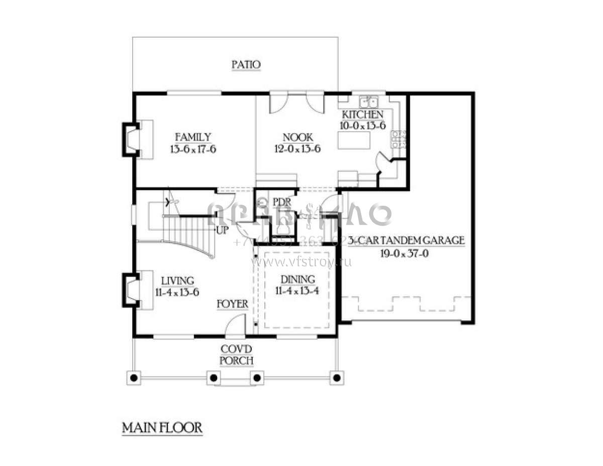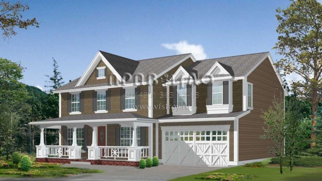 Проект двухэтажного дома с гаражом на три и более машин в американском стиле S5-240 (341-00072)