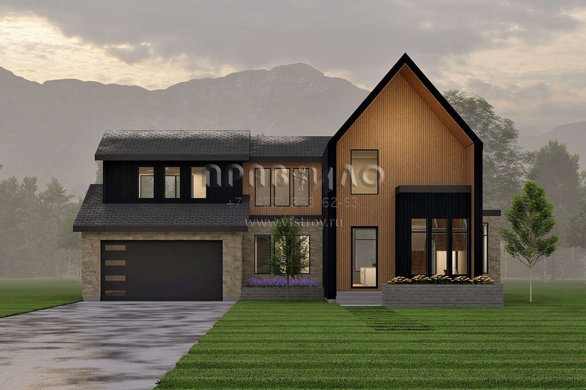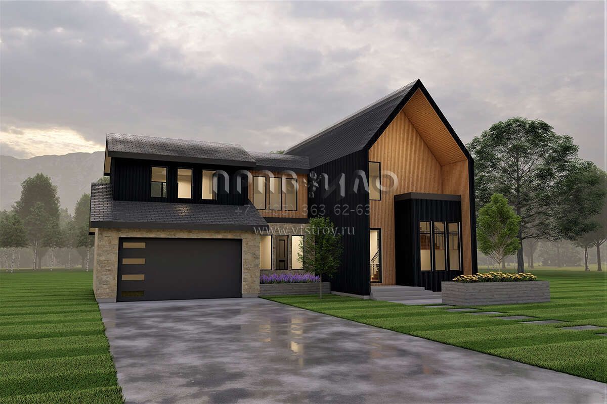 Проект двухэтажного дома с гаражом на две машины в современном стиле S5-240 (6422-00052)
