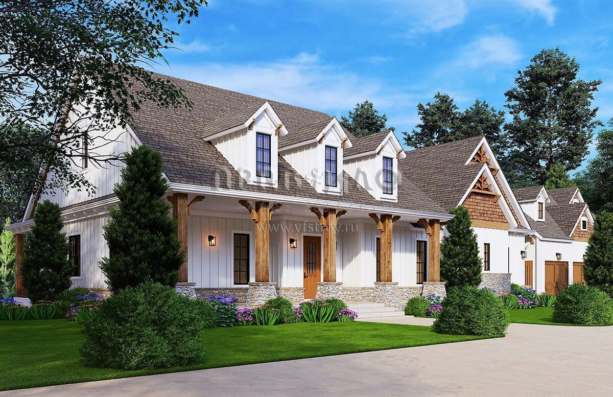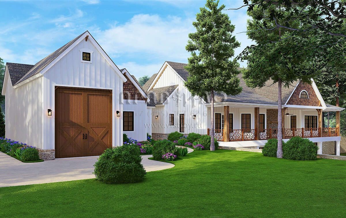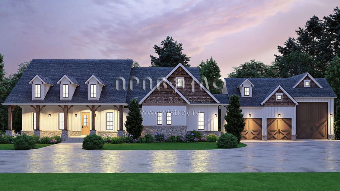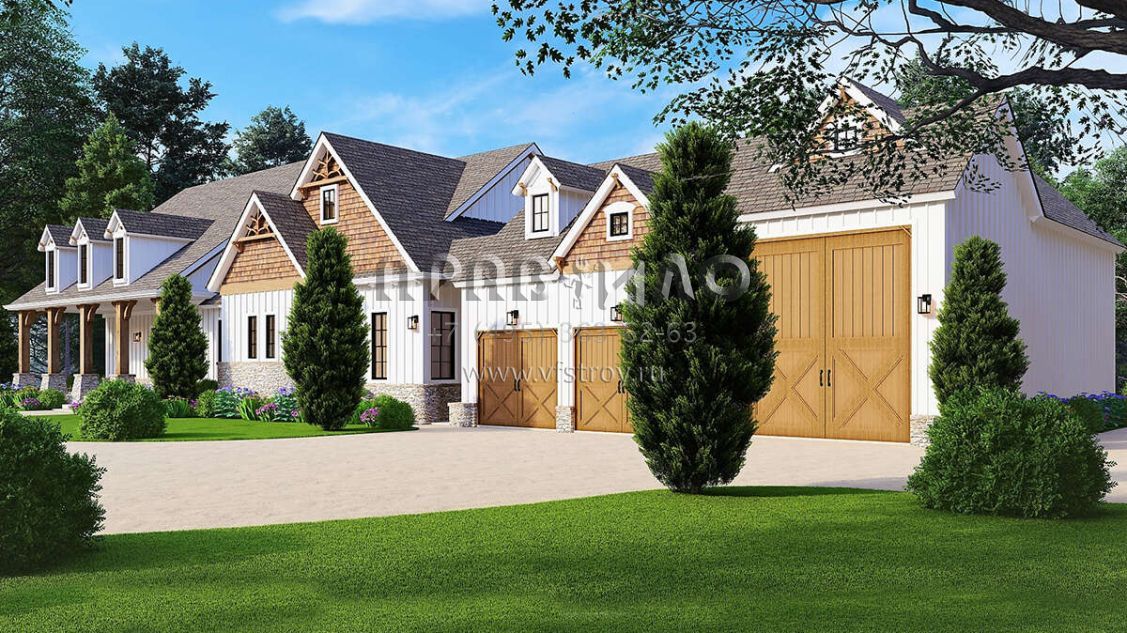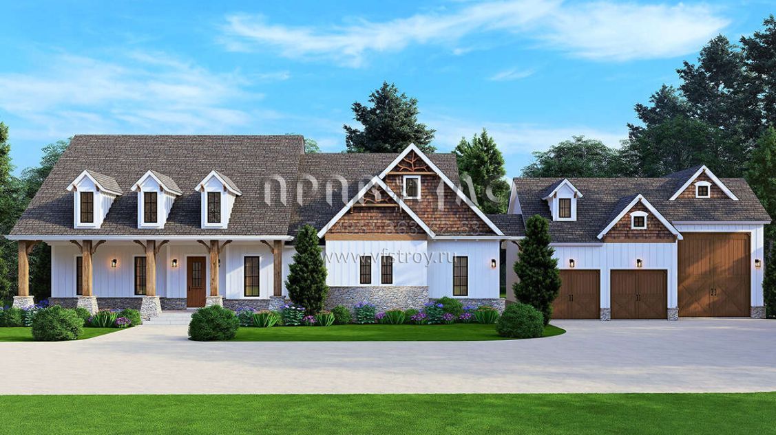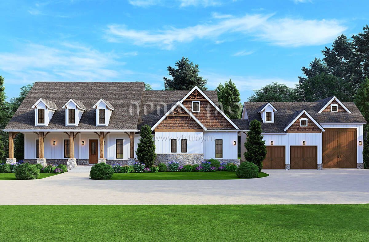 Проект одноэтажного дома с гаражом на три и более машин в американском стиле S5-240 (699-00302)