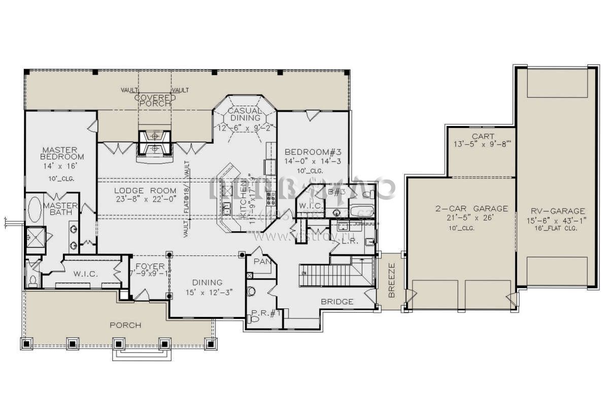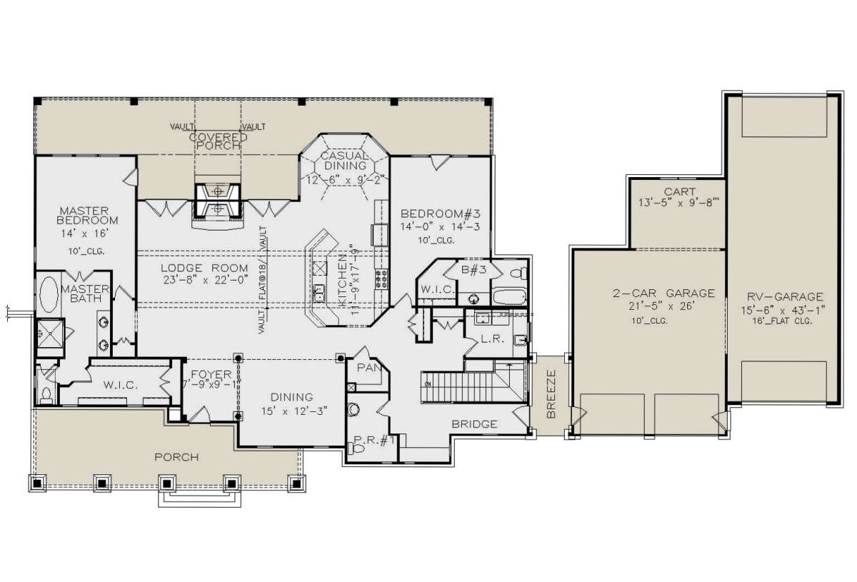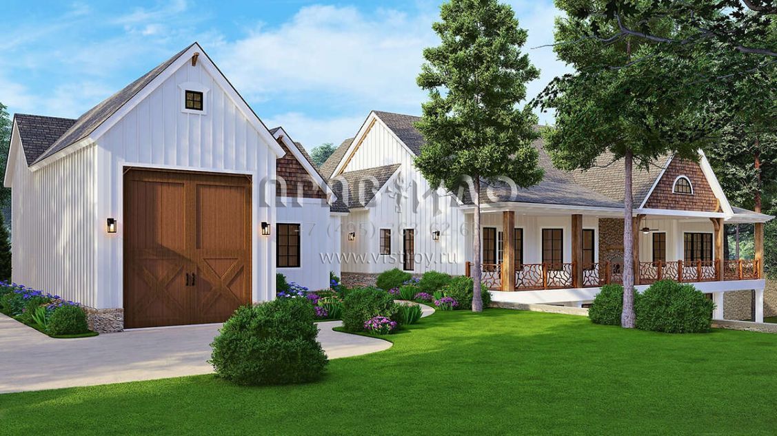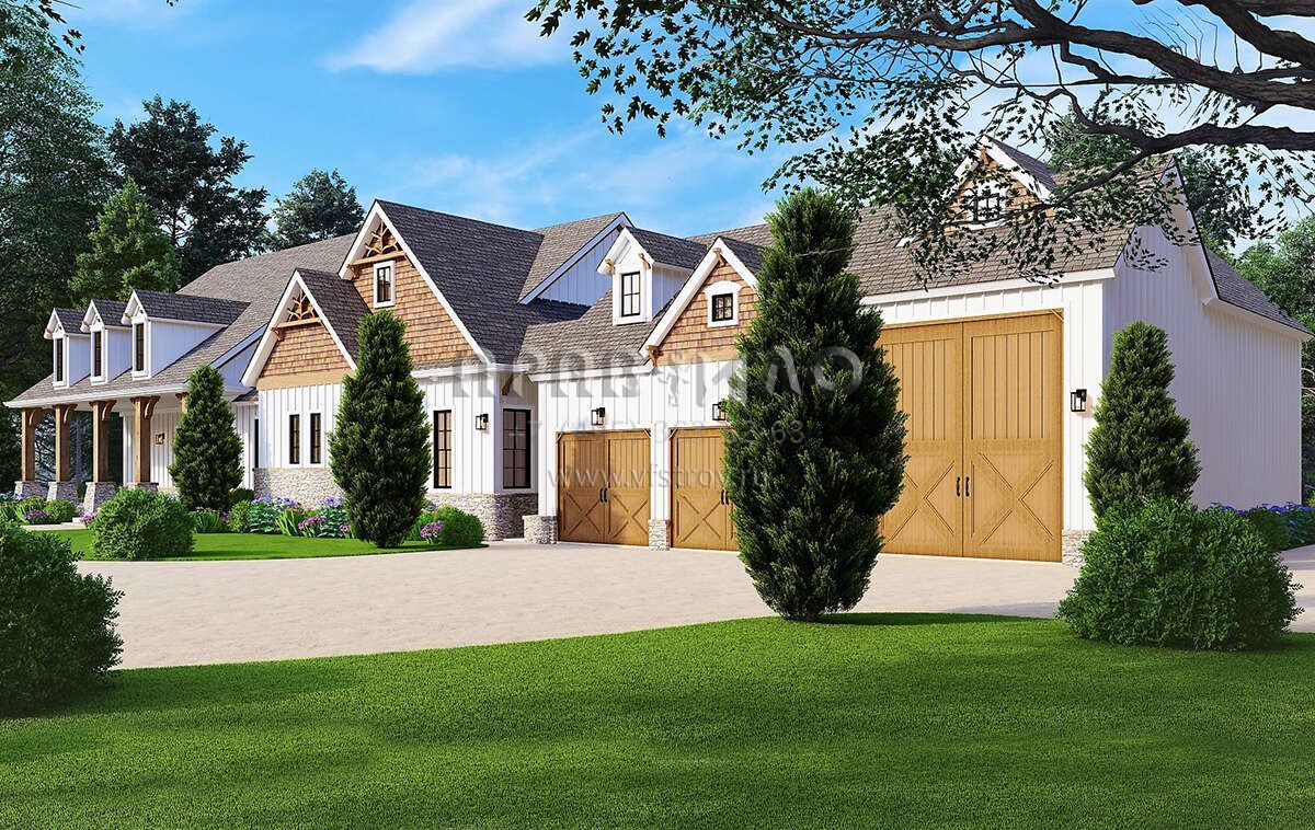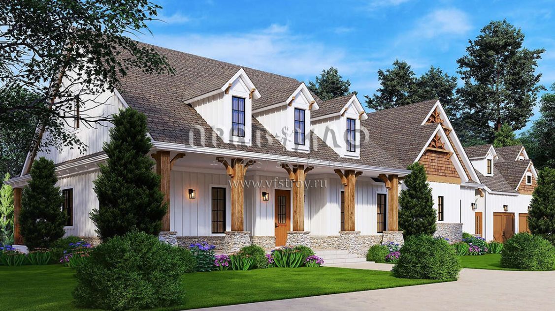 Проект одноэтажного дома с гаражом на три и более машин в американском стиле S5-240 (699-00302)