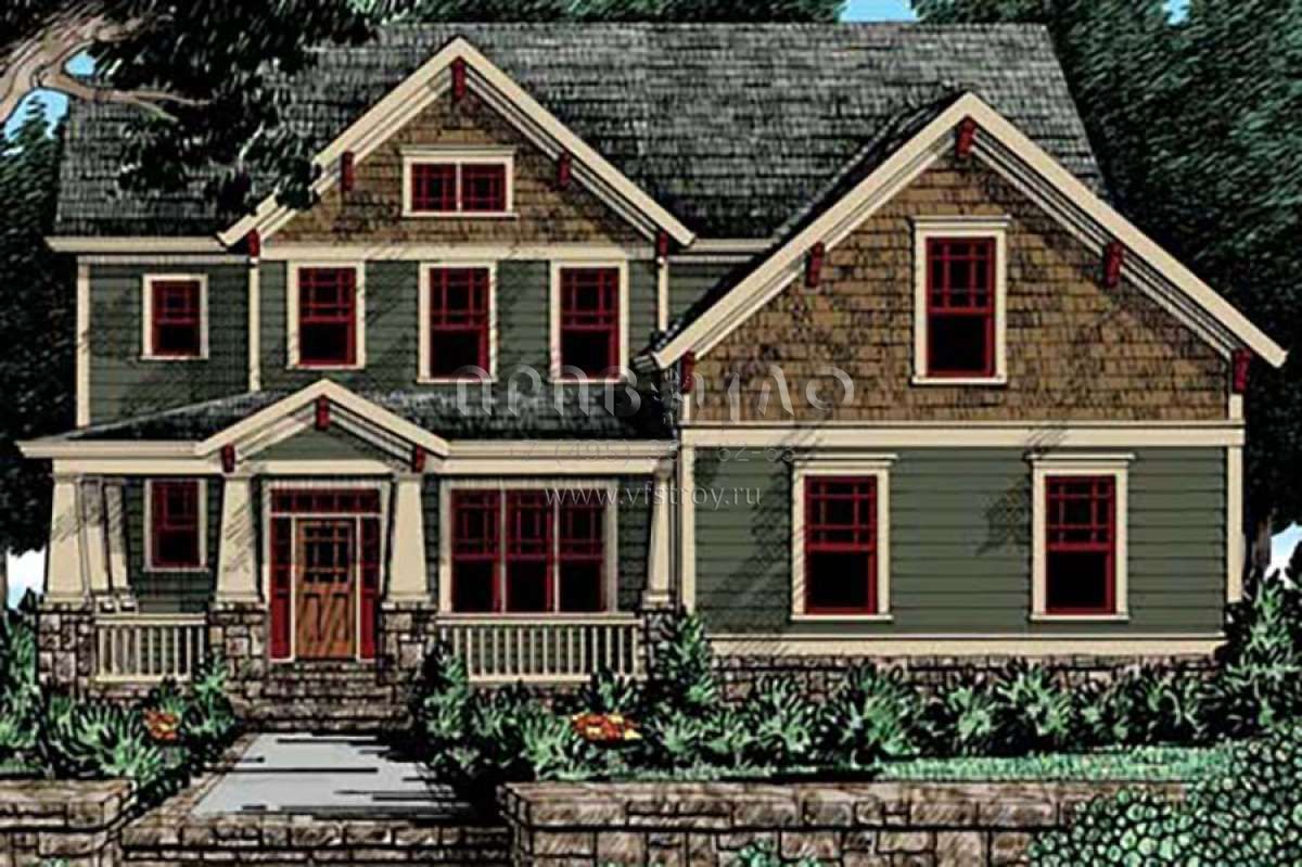 Проект двухэтажного дома с гаражом на две машины в американском стиле S5-240 (8594-00392)
