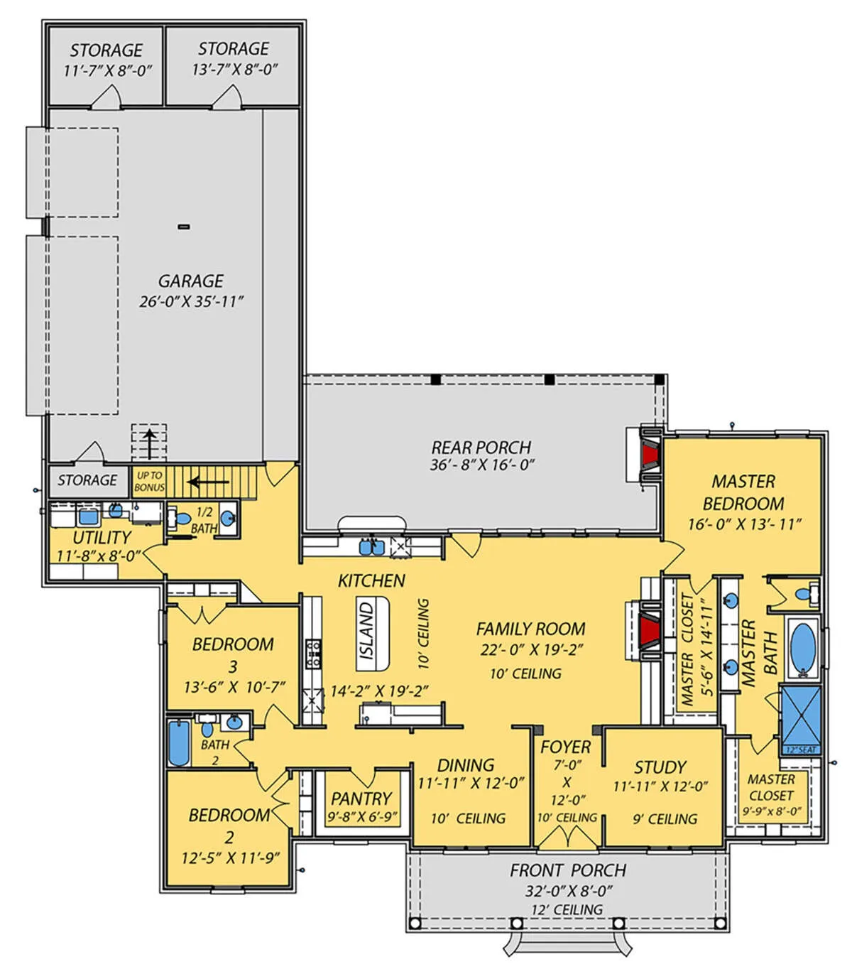 Проект одноэтажного дома с гаражом на три и более машин в стиле Ранчо S5-240 (9279-00031)