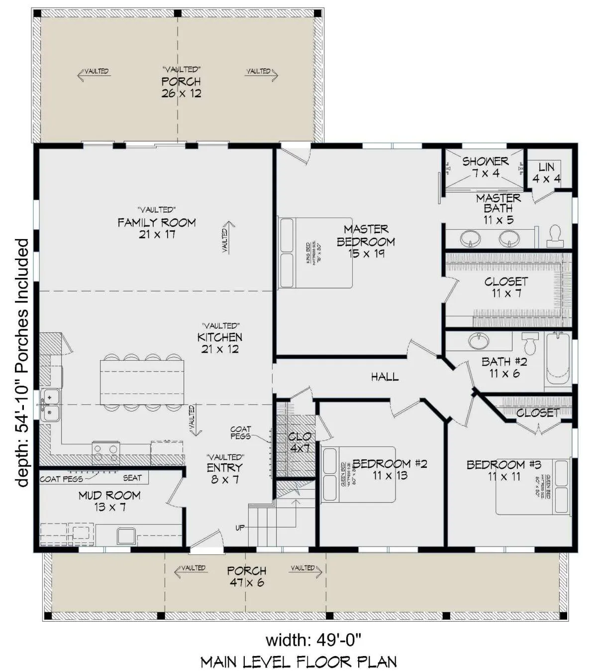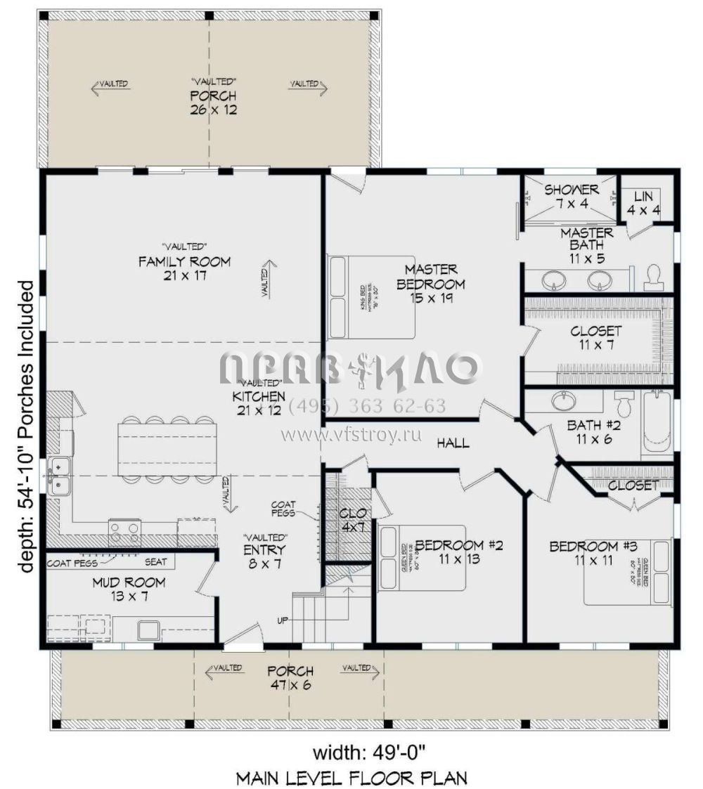 Проект одноэтажного дома без гаража в стиле Ранчо S5-240 (940-00258)