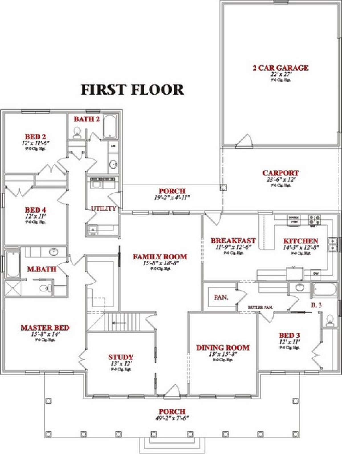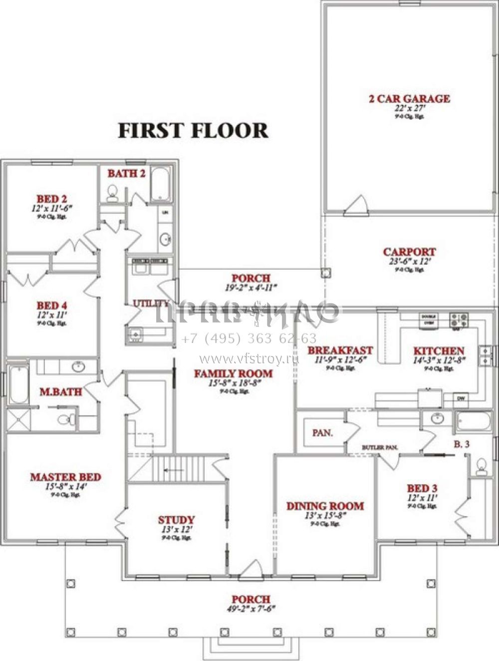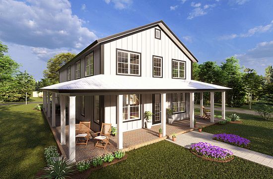 Проект двухэтажного дома с гаражом на две машины в стиле Ранчо S5-241 (1070-00032)