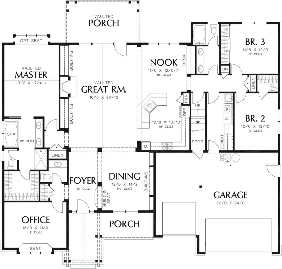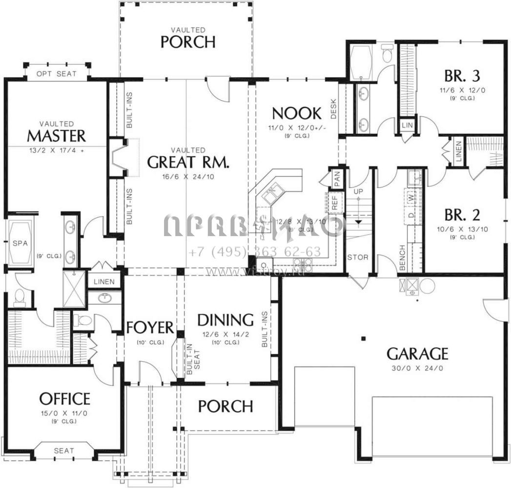 Проект одноэтажного дома с гаражом на три и более машин в американском стиле S5-241 (2559-00387)