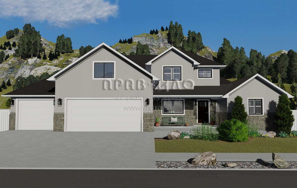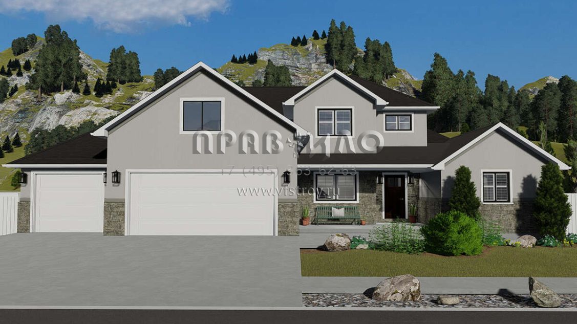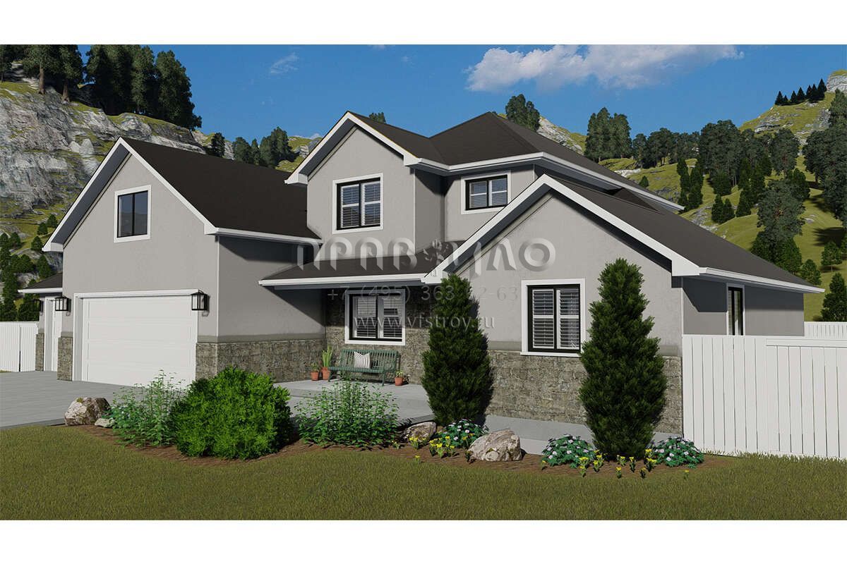 Проект двухэтажного дома с гаражом на три и более машин в английском стиле S5-241 (2802-00006)
