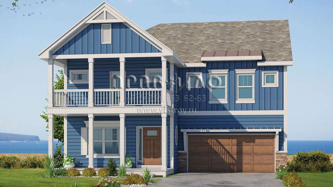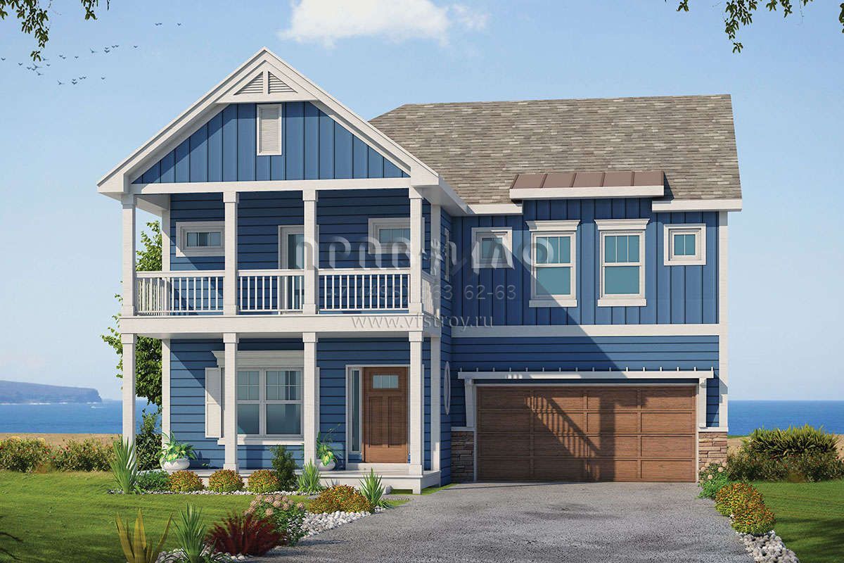 Проект двухэтажного дома с гаражом на две машины в прибрежном стиле S5-241 (402-01582)