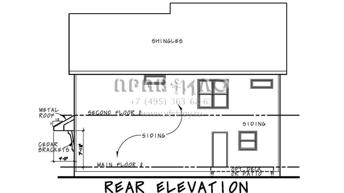 S5-241 (402-01596) Это иностранный проект, для которого требуется адаптация под нормы, действующие в Российской Федерации. Вы видите проект дома в стиле Ранчо. В этом доме сочетаются черты сельской постройки и аскетичность лофта. Внутри жильцы смогут проводить время с максимальным комфортом. Обратим внимание, что сейчас на планировках все размеры представлены в футах. Для перевода в метры вам необходимо значение в футах умножить на 0,3048.