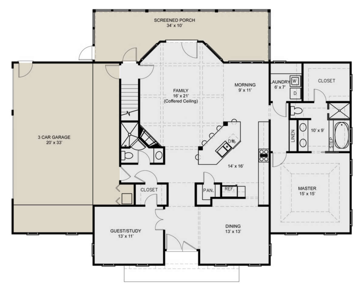 S5-241 (4195-00045) Это иностранный проект, для которого требуется адаптация под нормы, действующие в Российской Федерации. Вы видите проект дома в стиле Ранчо. В этом доме сочетаются черты сельской постройки и аскетичность лофта. Внутри жильцы смогут проводить время с максимальным комфортом. Обратим внимание, что сейчас на планировках все размеры представлены в футах. Для перевода в метры вам необходимо значение в футах умножить на 0,3048.