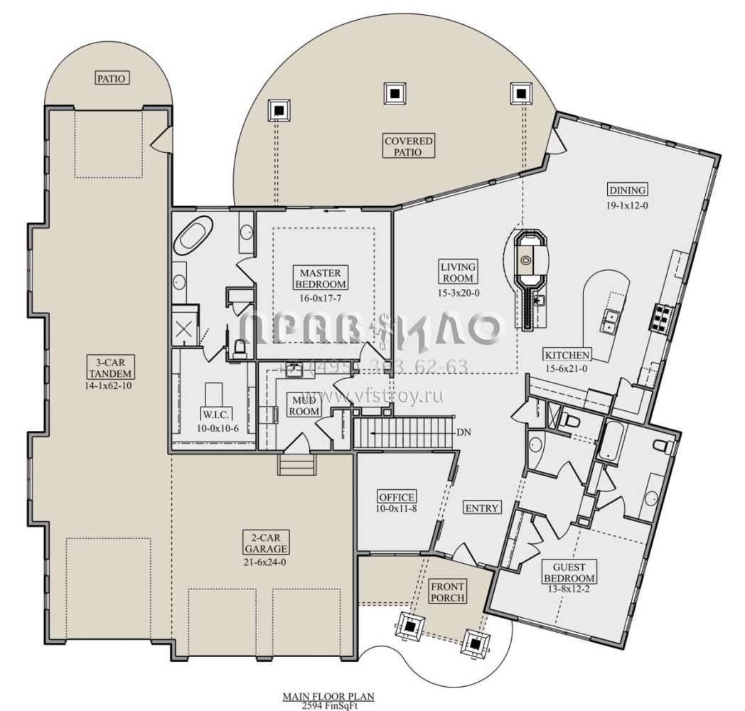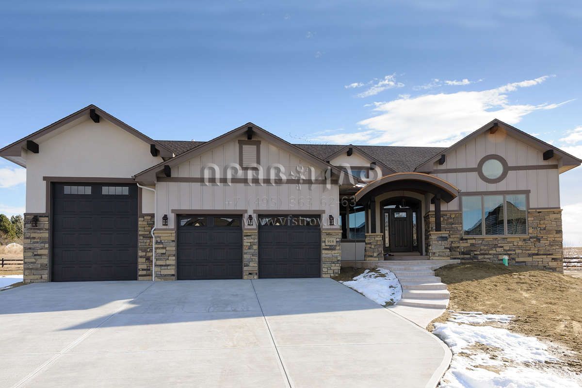 Проект одноэтажного дома с гаражом на три и более машин в стиле Ранчо S5-241 (5631-00117)