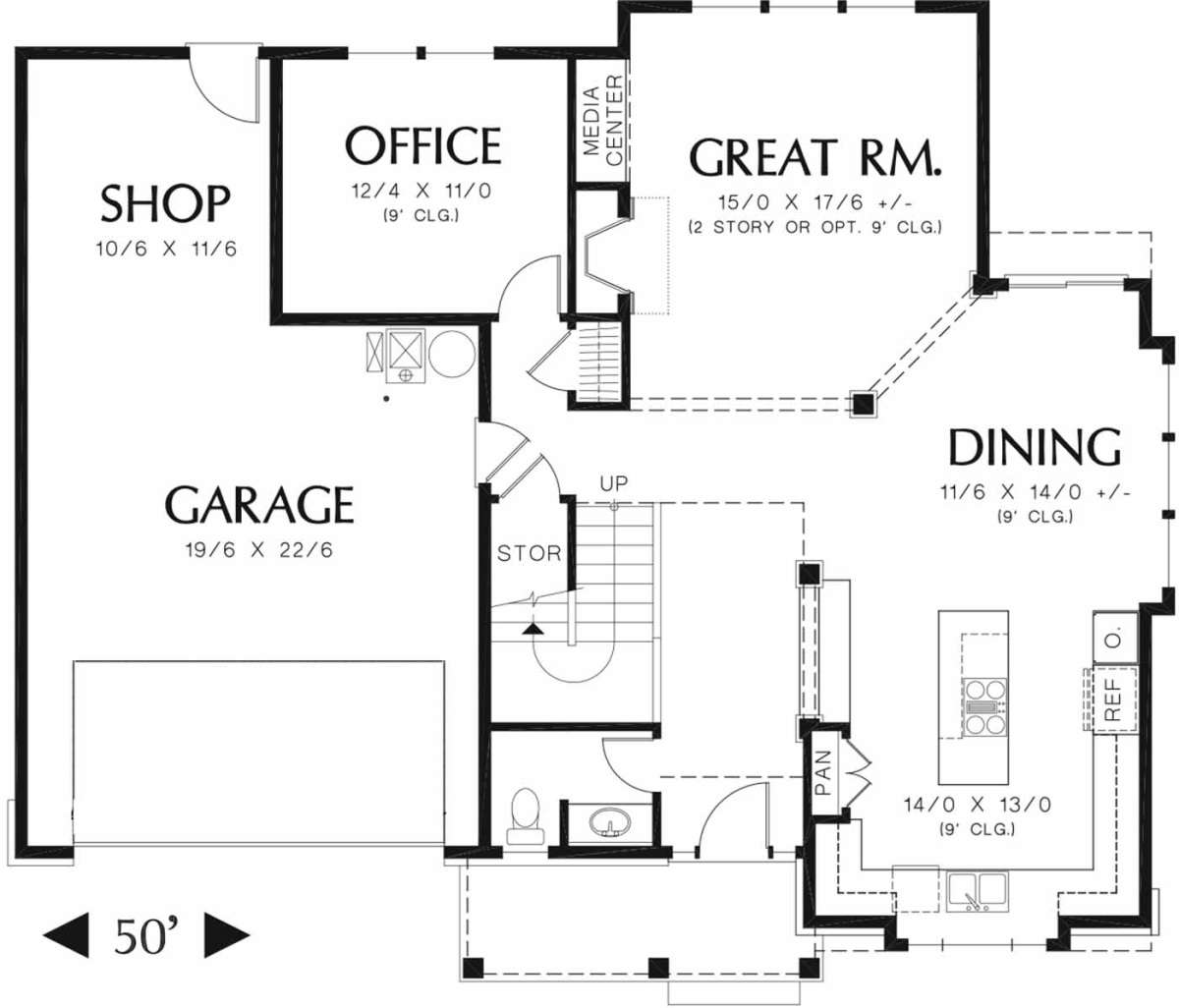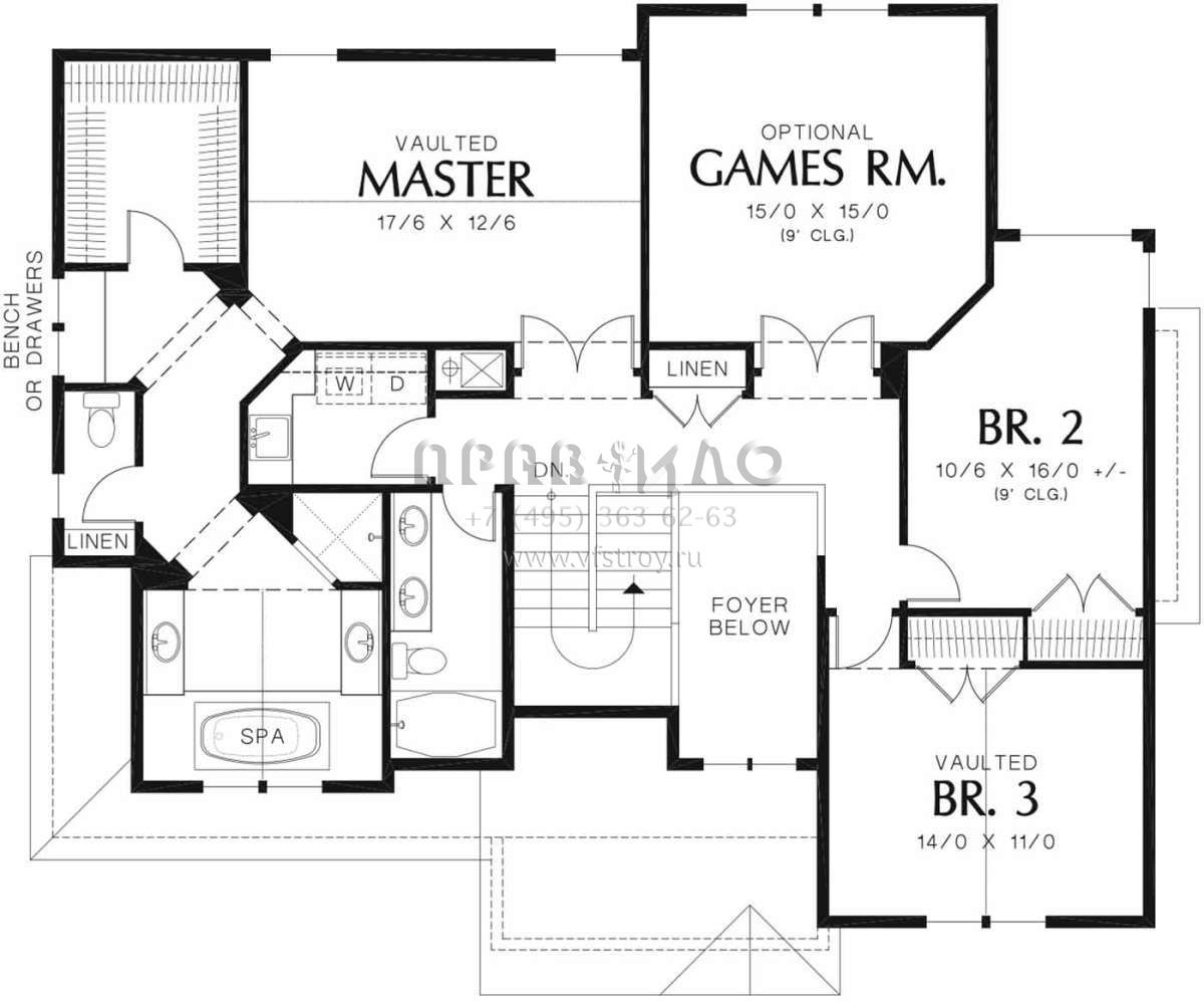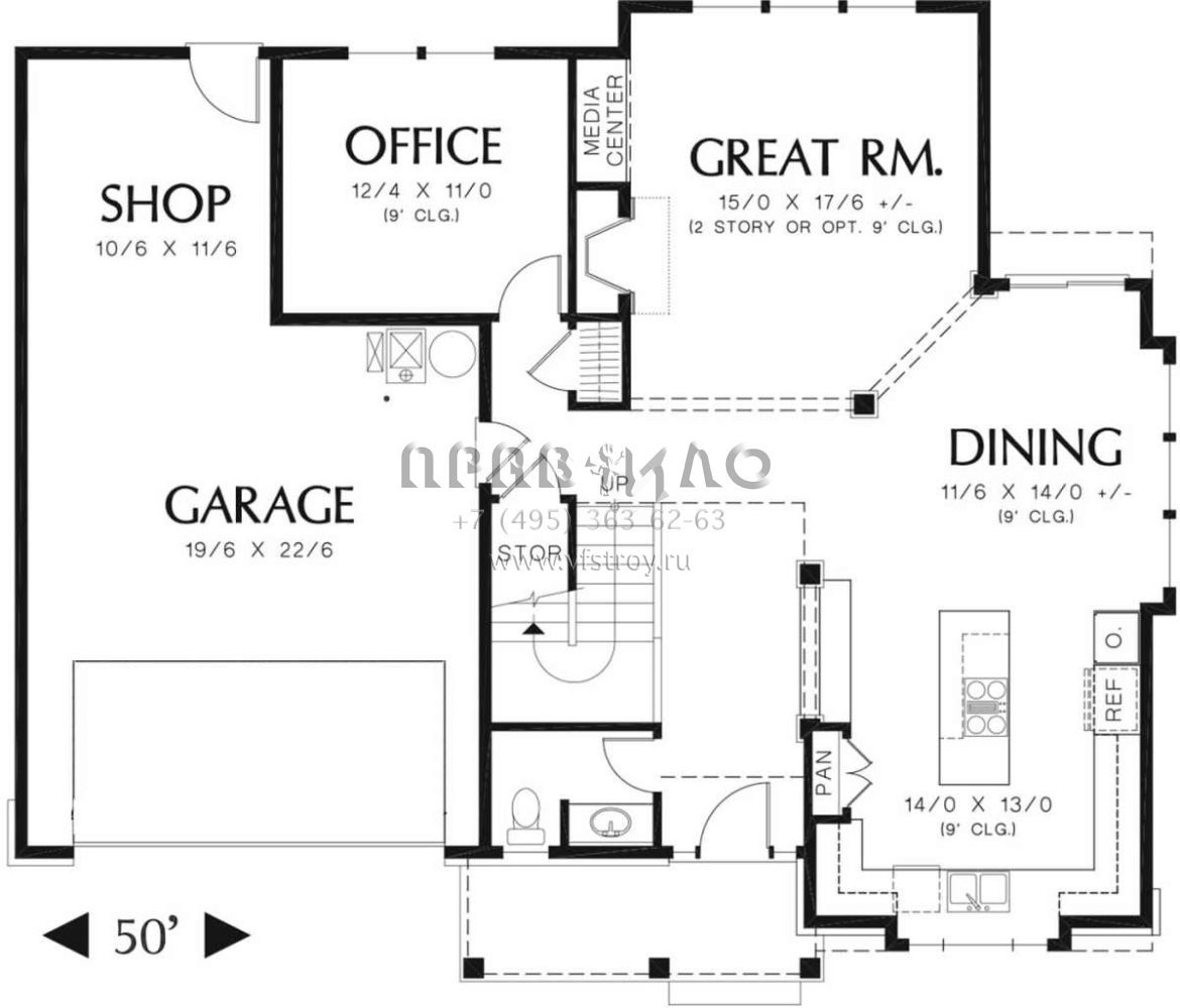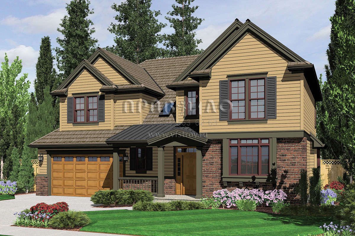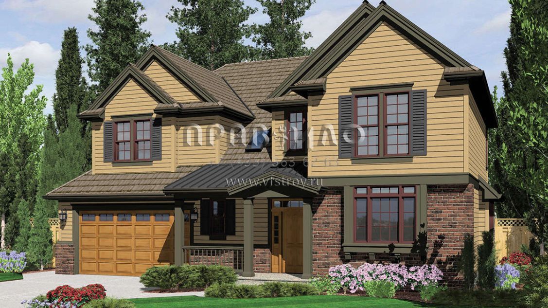 Проект двухэтажного дома с гаражом на три и более машин в стиле Ранчо S5-242 (2559-00384)