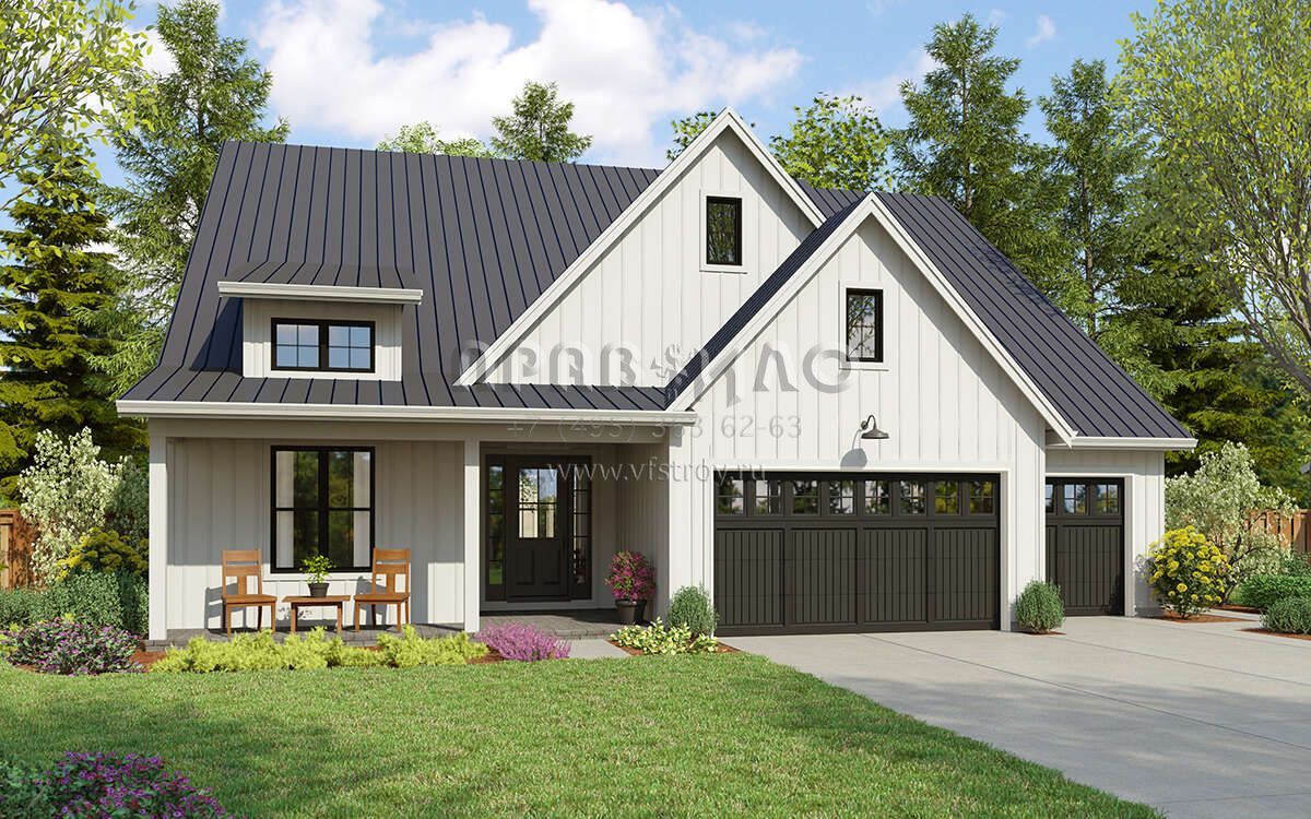 Проект одноэтажного дома с гаражом на три и более машин в современном стиле S5-242 (2559-00962)