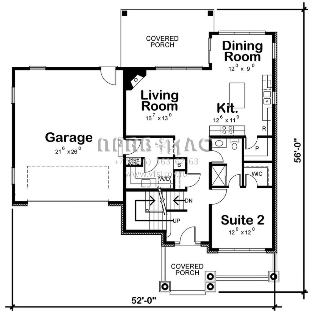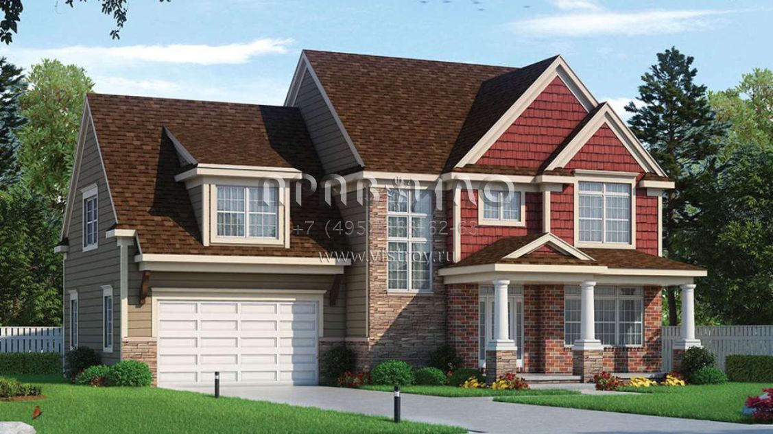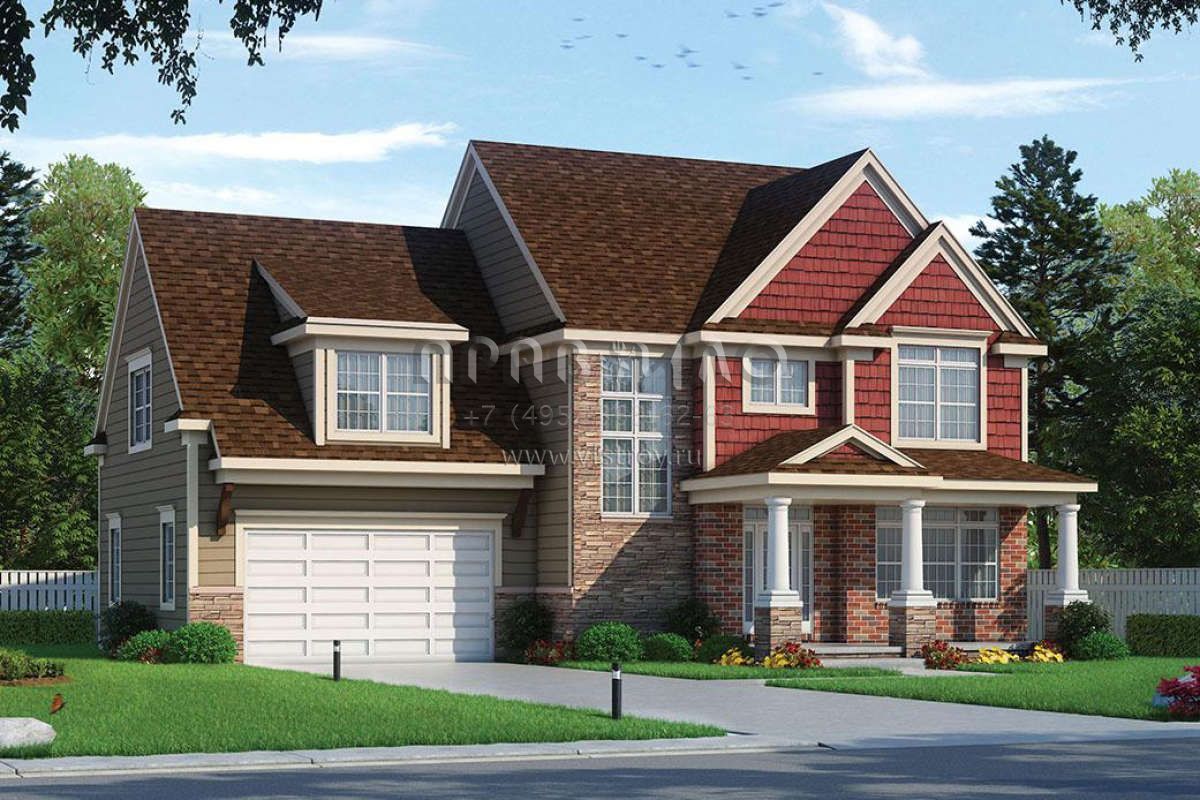 Проект двухэтажного дома с гаражом на две машины в стиле Ранчо S5-242 (402-01564)