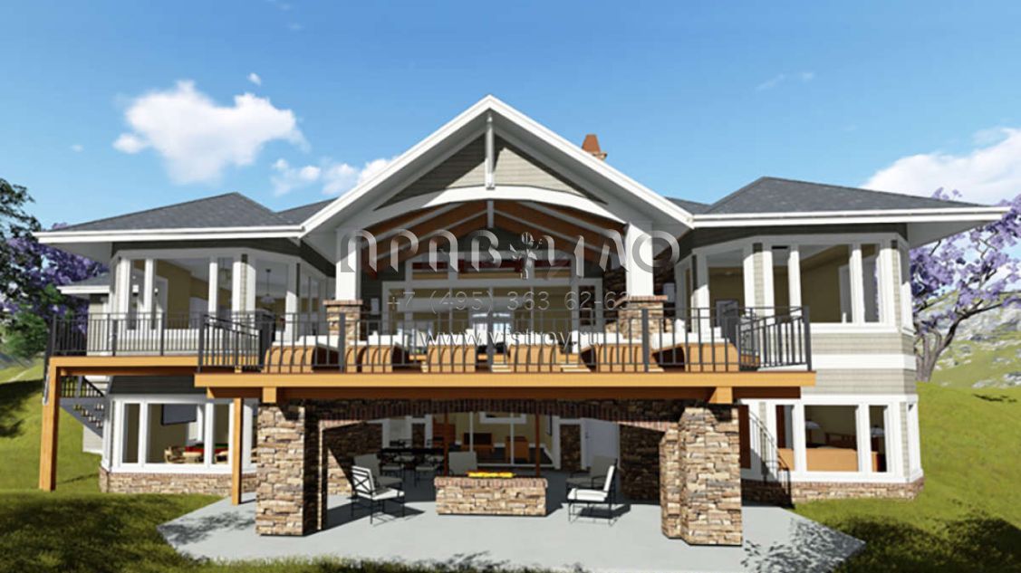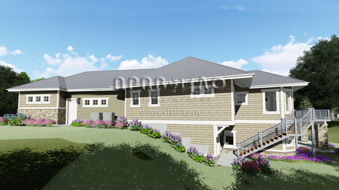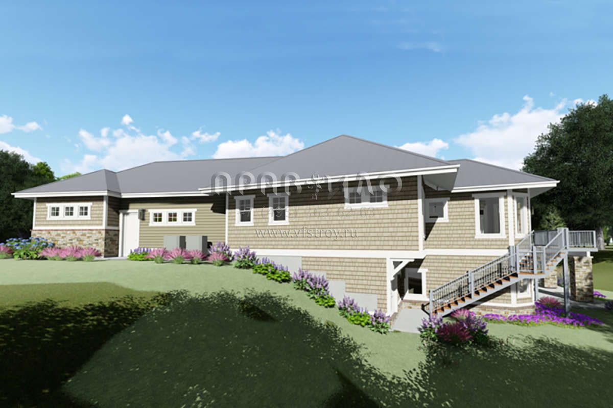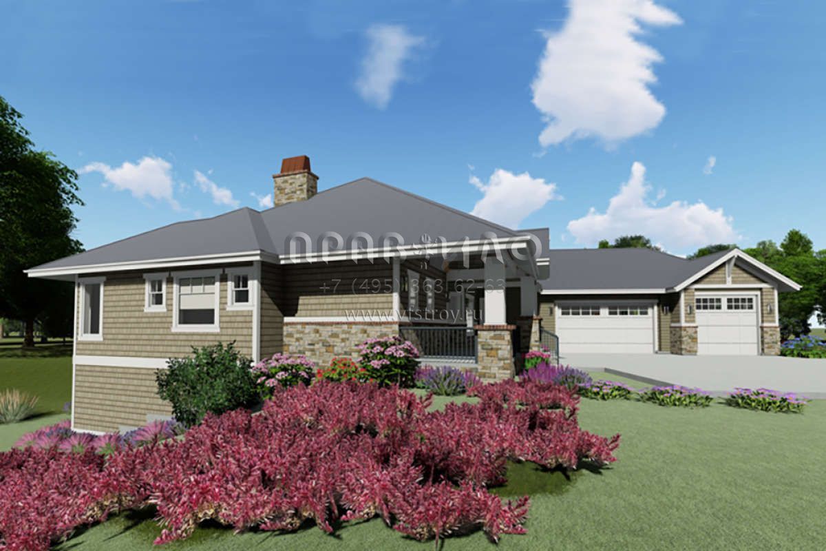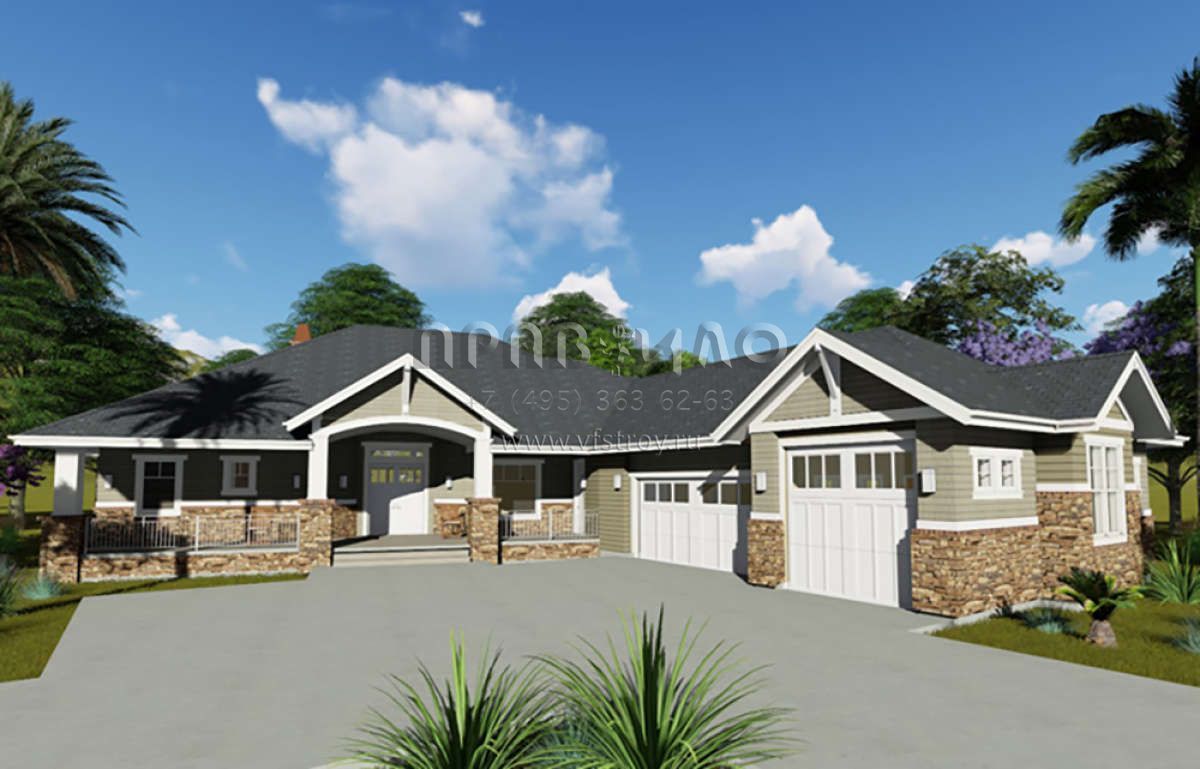 Проект одноэтажного дома с гаражом на три и более машин в американском стиле S5-242 (425-00005)