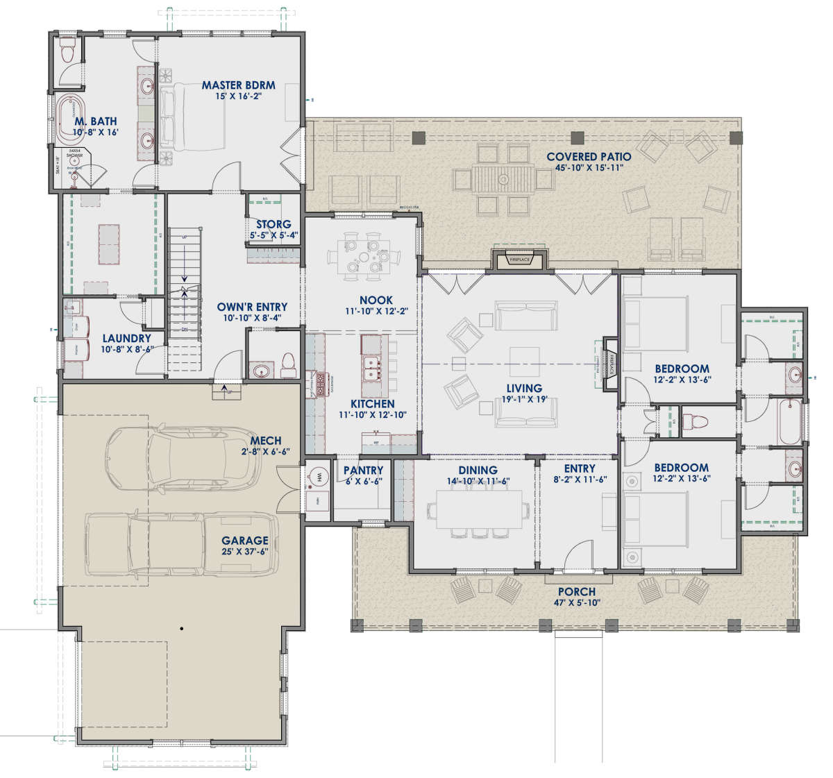 Поскольку этот проект разрабатывался иностранными архитекторами, для строительства дома требуется переработка проекта под действующие в России нормы. Данные визуализации проекта представлены для ознакомления с концепцией проекта. Проект разработан американским архитектурным бюро и представлен America's Best House Plans.
