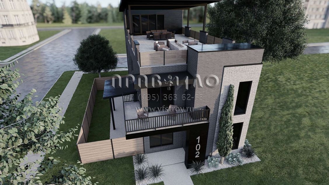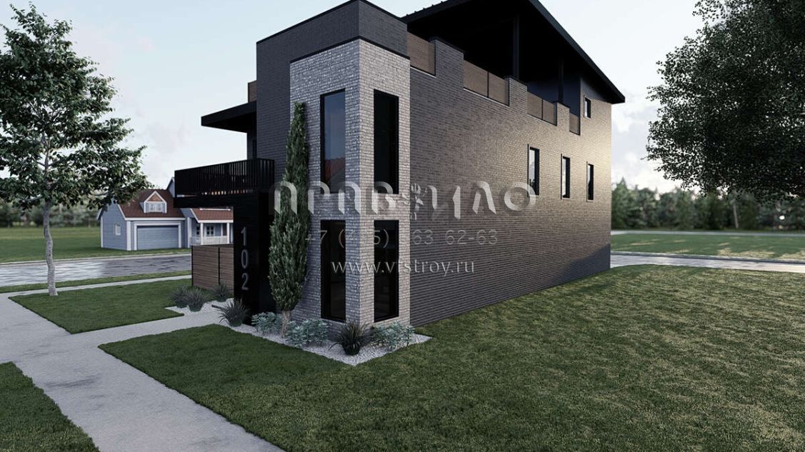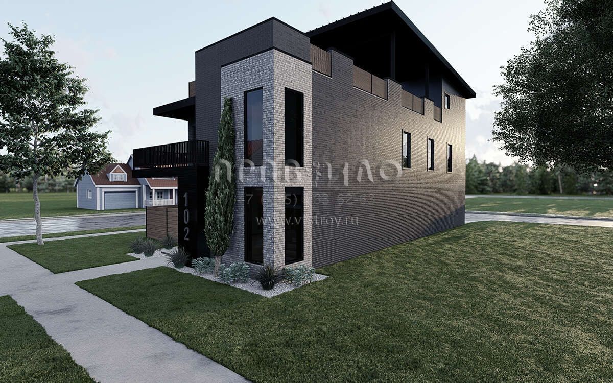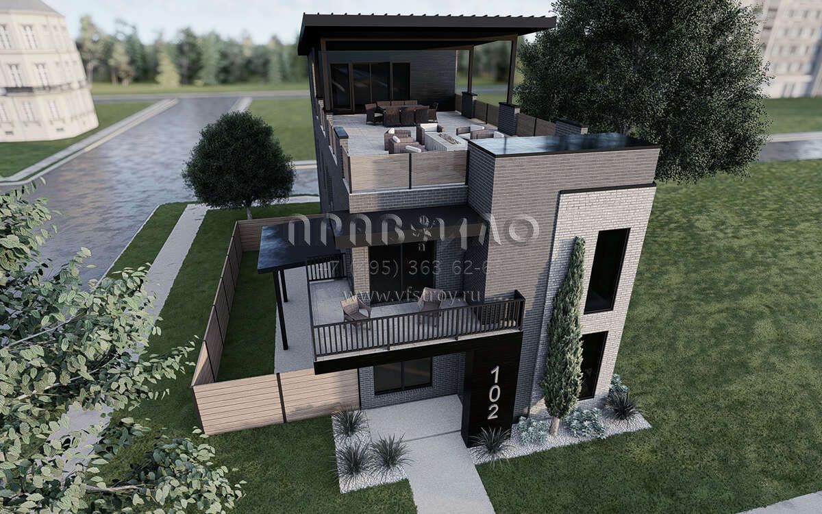 Проект трехэтажного дома с гаражом на две машины в стиле хай-тек S5-242 (8318-00380)