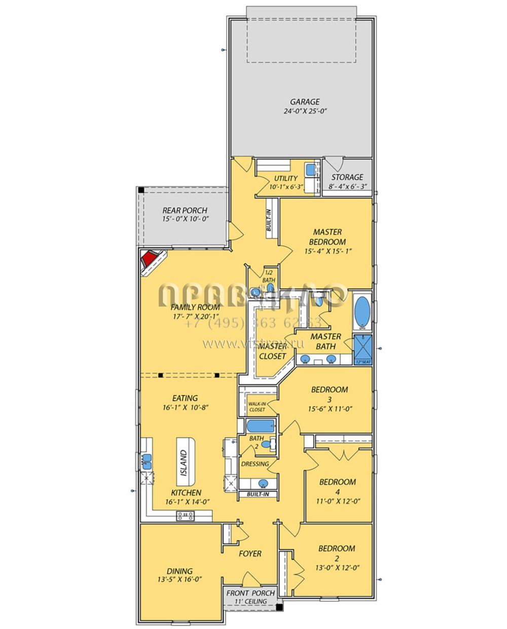 Проект одноэтажного дома с гаражом на две машины в стиле Ранчо S5-242 (9279-00021)