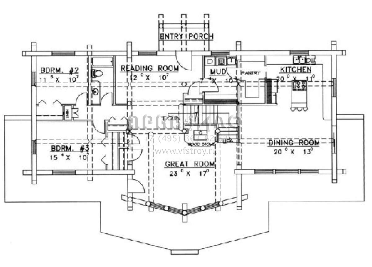 S5-243 (039-00032) Это иностранный проект, для которого требуется адаптация под нормы, действующие в Российской Федерации. Вы видите проект дома в стиле Ранчо. В этом доме сочетаются черты сельской постройки и аскетичность лофта. Внутри жильцы смогут проводить время с максимальным комфортом. Обратим внимание, что сейчас на планировках все размеры представлены в футах. Для перевода в метры вам необходимо значение в футах умножить на 0,3048.